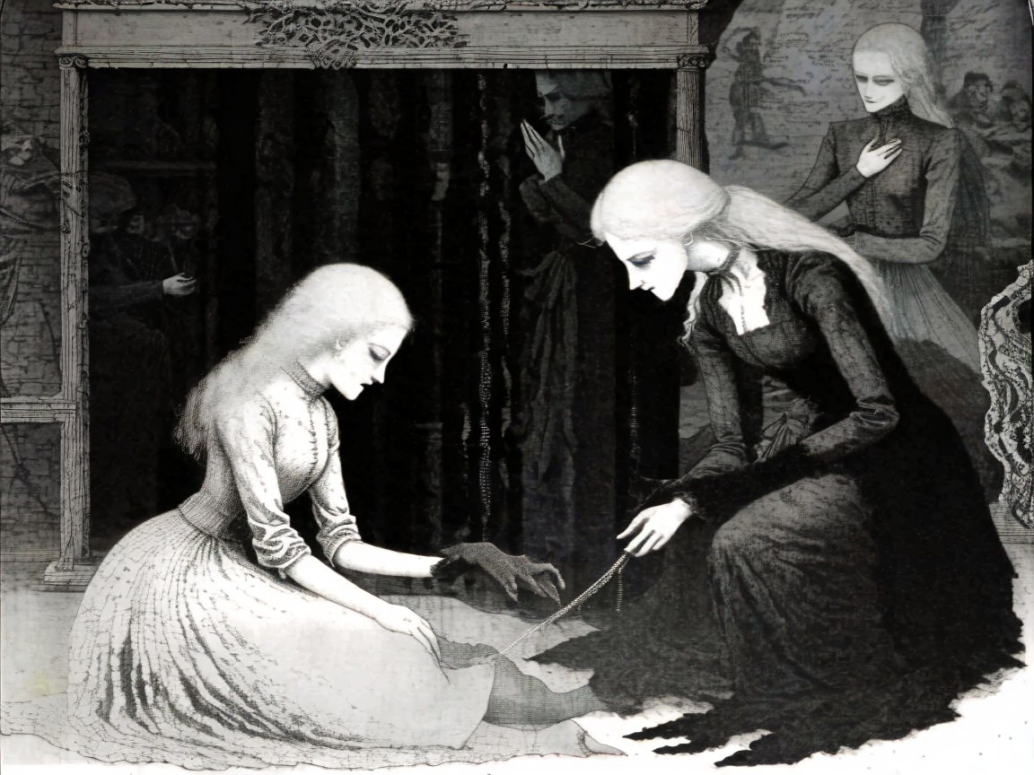 Prompt: Epic fantasy, dark fantasy, beautiful fantasy horror, hand drawn sketch illustrations in the style of Diablo, Warhammer, Trench Crusade, inspired by artists Brom and John Blanche.