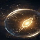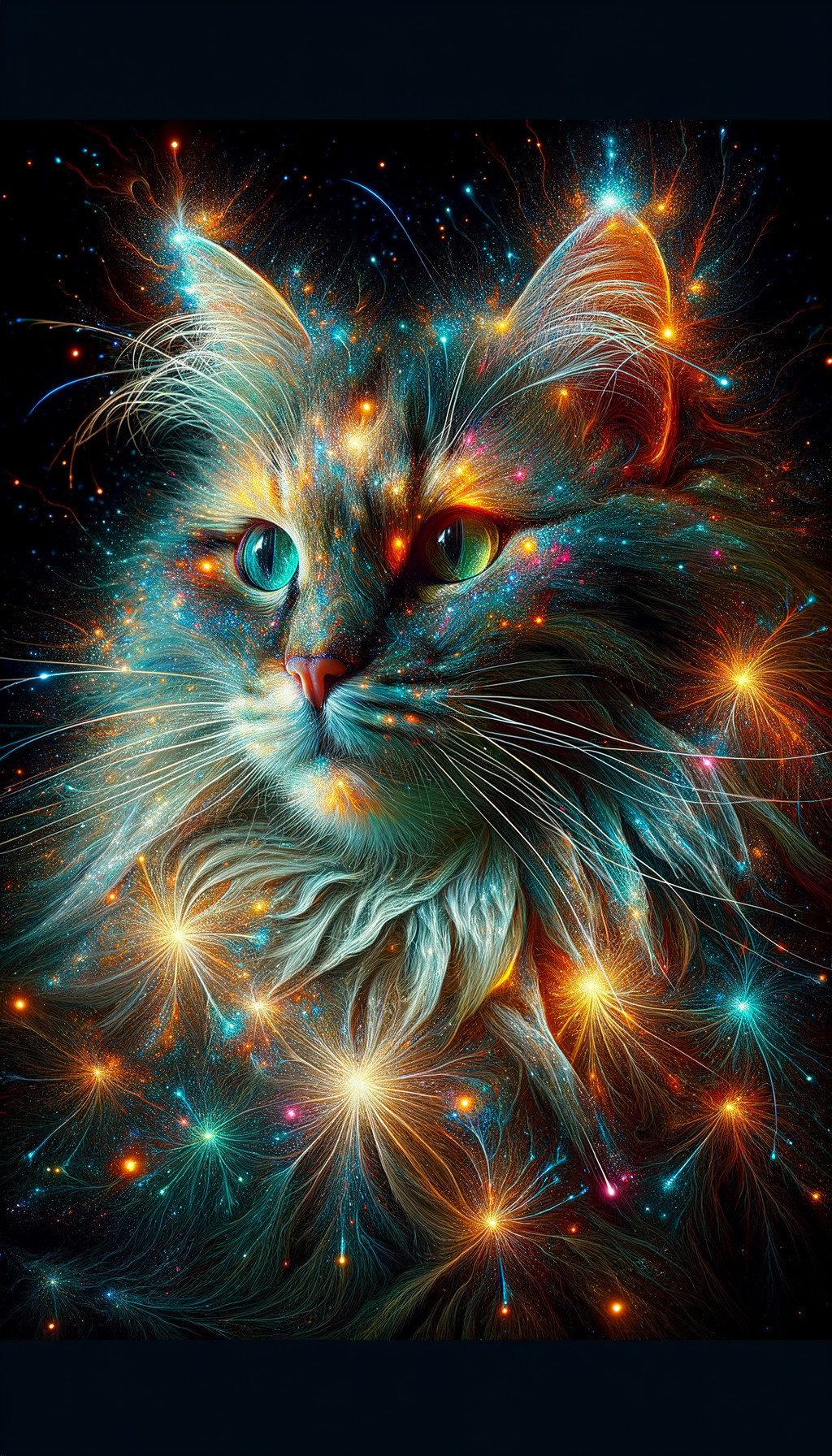 Prompt: Una escena celestial vibrante, llena de luz radiante y destellos etéreos, donde se revela la conexión divina entre mi mente y Dios. Representar la unidad espiritual en una atmósfera translúcida de paz y serenidad: una luz dorada que emana desde el corazón del espíritu, extendiéndose profundamente en el cosmos infinito. Un paisaje surrealista lleno de símbolos de gratitud hacia el Creador, como unos rayos de luz que se mezclan con arcoíris suaves y fluidos que fluyen hacia un cielo eterno. Que la imagen evoque una unión perfecta entre el alma femenina y la Divinidad, en donde el mensaje principal - 'Mi mente alberga sólo lo que pienso con Dios' - se traduzca visualmente en un primer plano con delicados trazos de armonía y amor. Incorporar detalles de conexión espiritual tales como manos extendidas hacia el cielo, un halo dorado alrededor de la conciencia, y la presencia de energía lumínica que emana paz infinita.