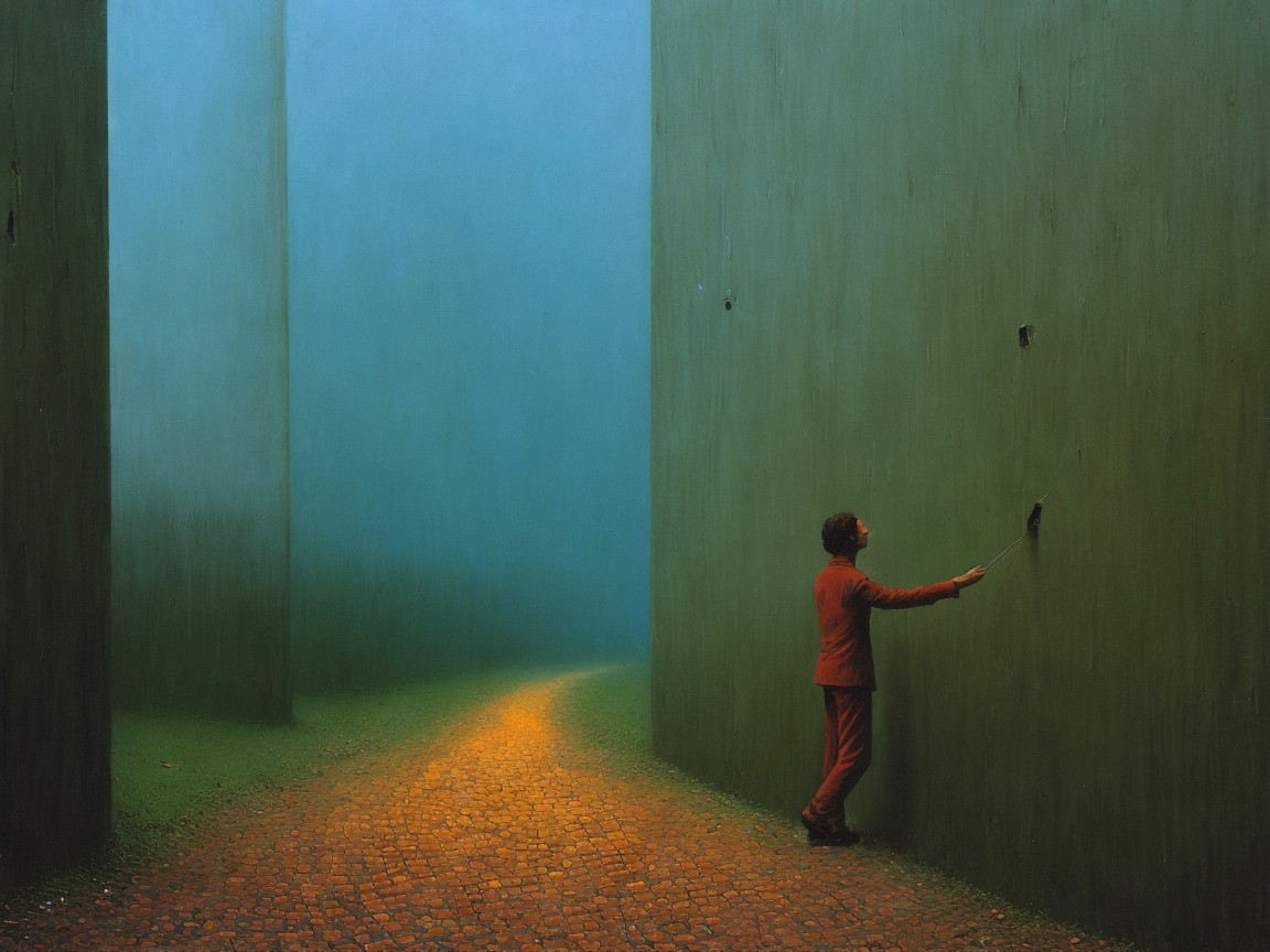 Prompt: a very surreal vision: micro cracks on a rough wall create a very complex, painterly image on surface of this wall in a surreal and abstract style of zdislav beksinski