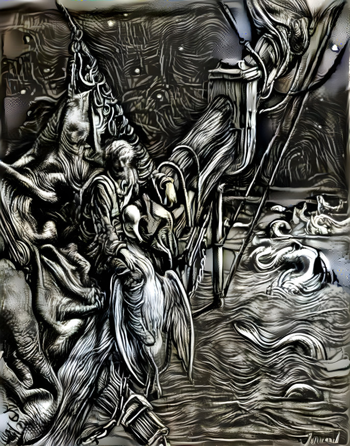 Prompt: An abstract painting with sweeping gestural strokes of charcoal and pencil. The artwork incorporates acrylic paints, pigment-muted ink, and plaster art. The minimalistic and impressionistic style is evident in the blurred abstract depiction of a serene landscape featuring a lone tree standing on a small piece of land or island. The tree’s branches are mostly barren, with a few vibrant, orange leaves contrasting sharply against the darker charcoal tones, symbolizing resilience amidst solitude. Misty clouds hover just above the water’s surface in the background, adding a dreamy, ethereal quality to the scene. Below the tree, the calm water mirrors the silhouette of the tree and hovering clouds, enhancing the sense of stillness and tranquility. To the right of the tree, a small structure, possibly a gazebo or shelter with a simple roof, adds a subtle architectural element. The background is filled with surreal distortions, such as soft, horizontal strokes that create depth and floating reflections, adding