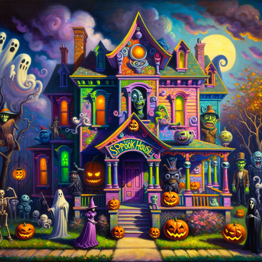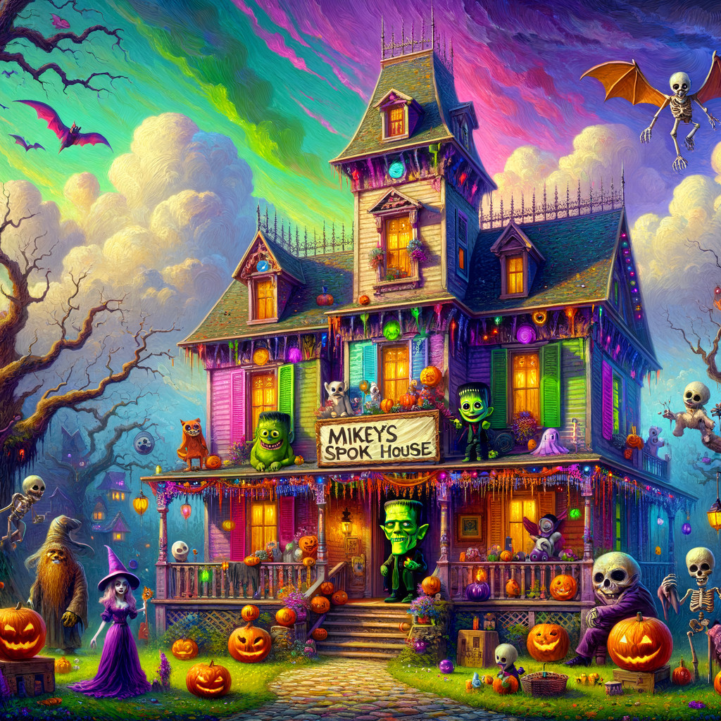 Prompt: Halloween “Mikey’s Spook House” funny and cute Halloween (((not scary))).