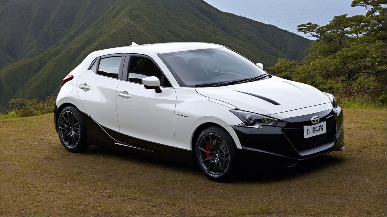 Prompt: Sport hatchback a japanese style, long headlights, modern streamlined design, aggressive front features, and sporty wheels. It exudes power and performance, highlighting its modern and dynamic aesthetic, long underhood space car with a sleek design, a beige exterior, and rounded lines. It has a sporty stance.