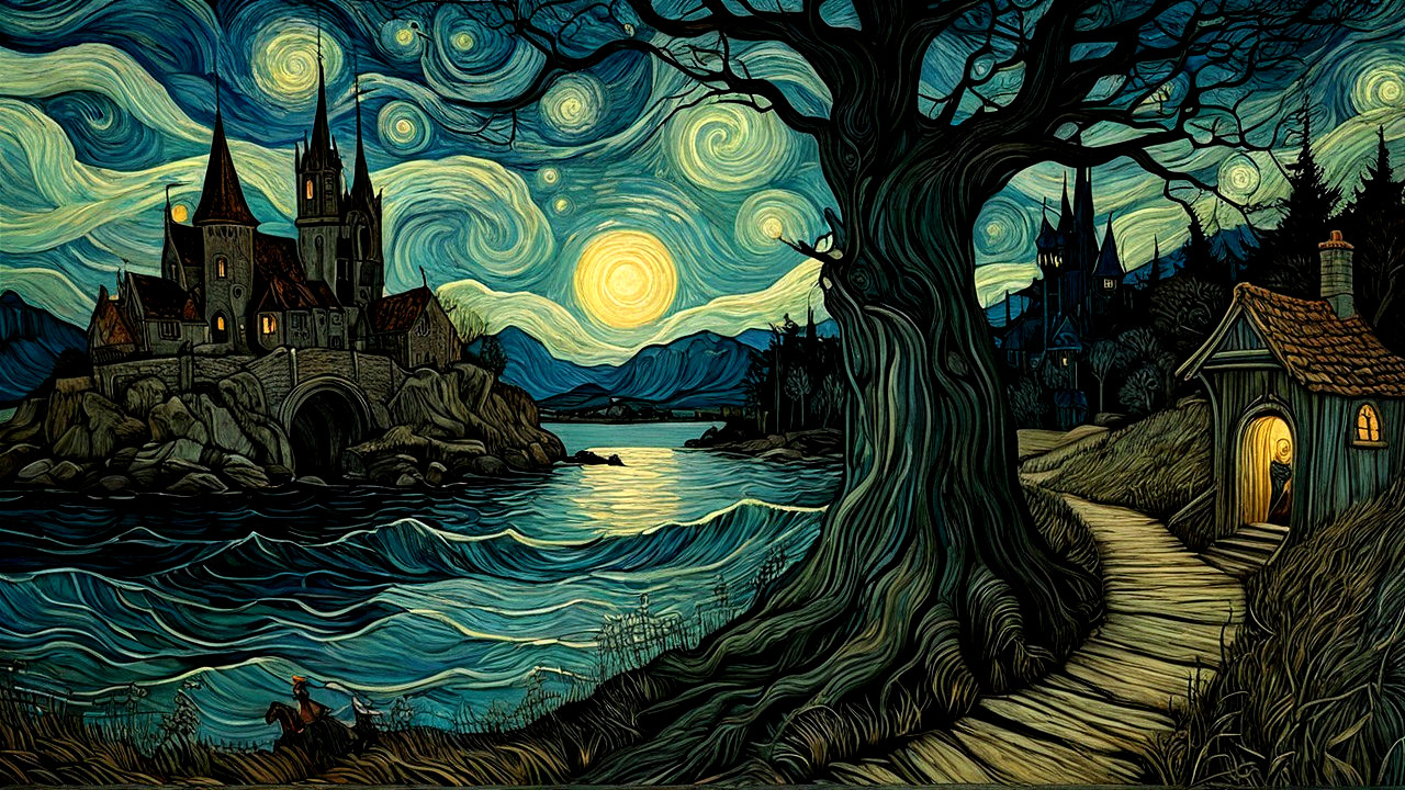 Prompt: A lone, weathered lighthouse stands sentinel on a jagged, storm-lashed coast. The sky above is a turbulent canvas of bruised purples and fiery oranges. The style is epic, dramatic concept art, reminiscent of J.M.W. Turner's seascapes, with a focus on atmospheric perspective and the raw power of nature.