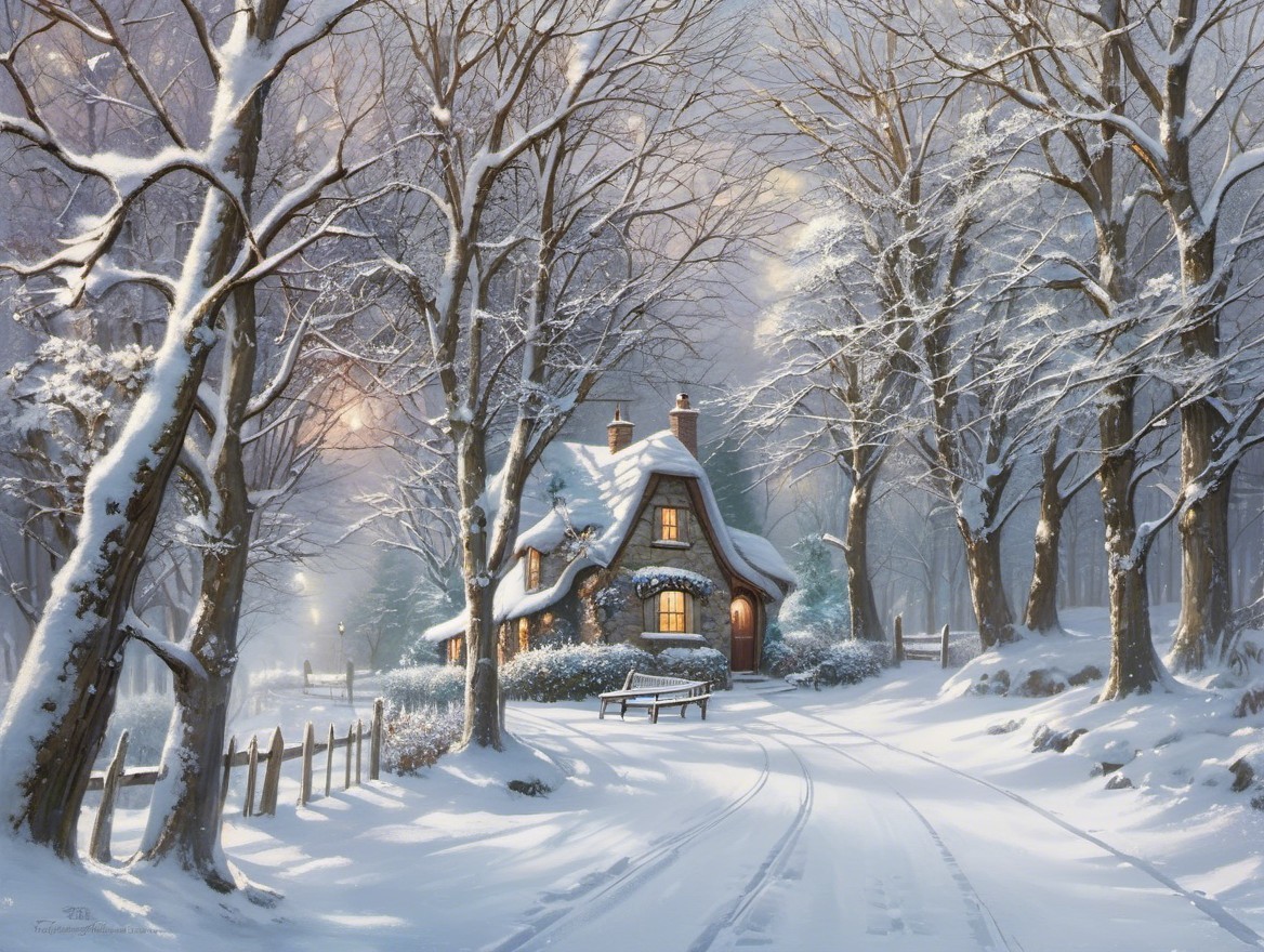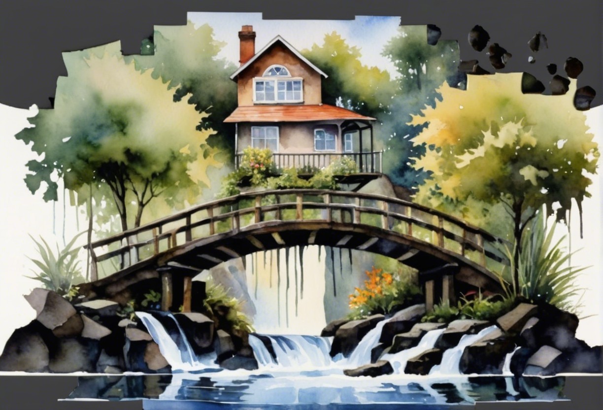 Prompt: A centered Edwardian-era picture of a soothing landscape painted in a luminous 1920s-style watercolor. The piece features, intricate textures, blending the look of a refined studio photograph with expressive watercolor techniques. Rendered in the evocative, architectural watercolor style of Thomas Wells Schaller.