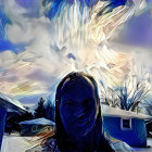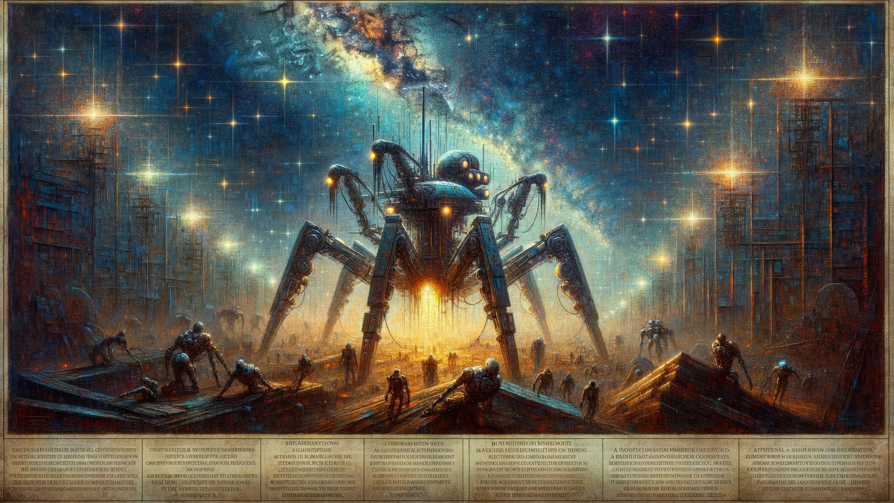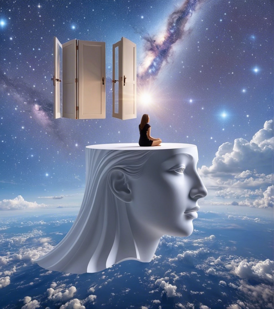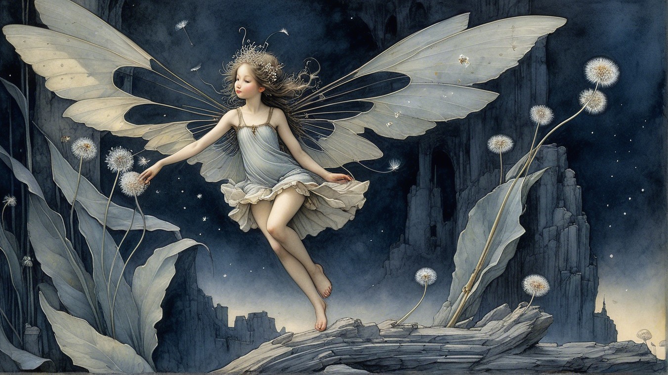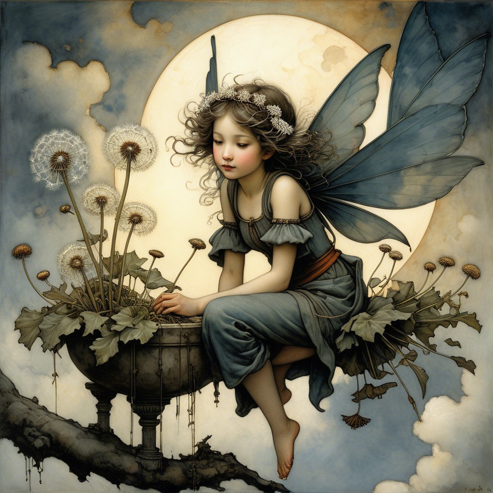 Prompt: "A solitary figure, draped in tattered rags, cautiously navigates a precarious, fractured stone bridge spanning a colossal chasm, under a twilight sky strewn with shimmering, tear-like stars; the scene evokes the poignant fear and captivating wonder of dreams. To the figure's left, the chasm's depths reflect a distorted, idyllic memory of sun-drenched meadows and quaint cottages, while the right side descends into a swirling vortex of ominous shadows and anguished expressions, hinting at a haunting nightmare. This intricate concept art, inspired by the evocative darkness of Greg Rutkowski, the dramatic gravitas of Gustave Doré, and the luminous atmosphere of Thomas Kinkade, showcases complex dark academia elements within a warm, golden light filtering through the celestial display, illuminating the bridge's weathered surface and the figure's weary form."
