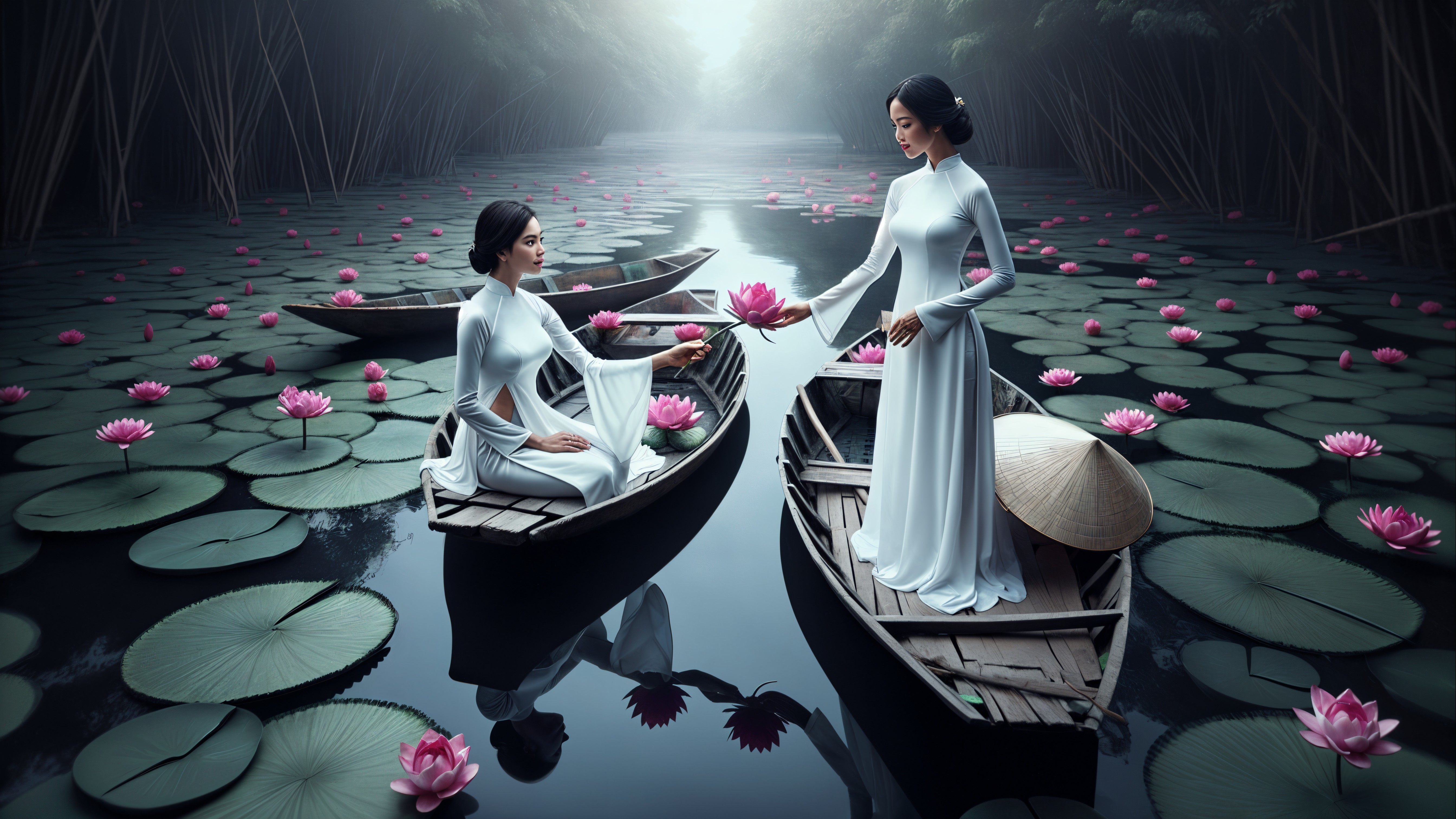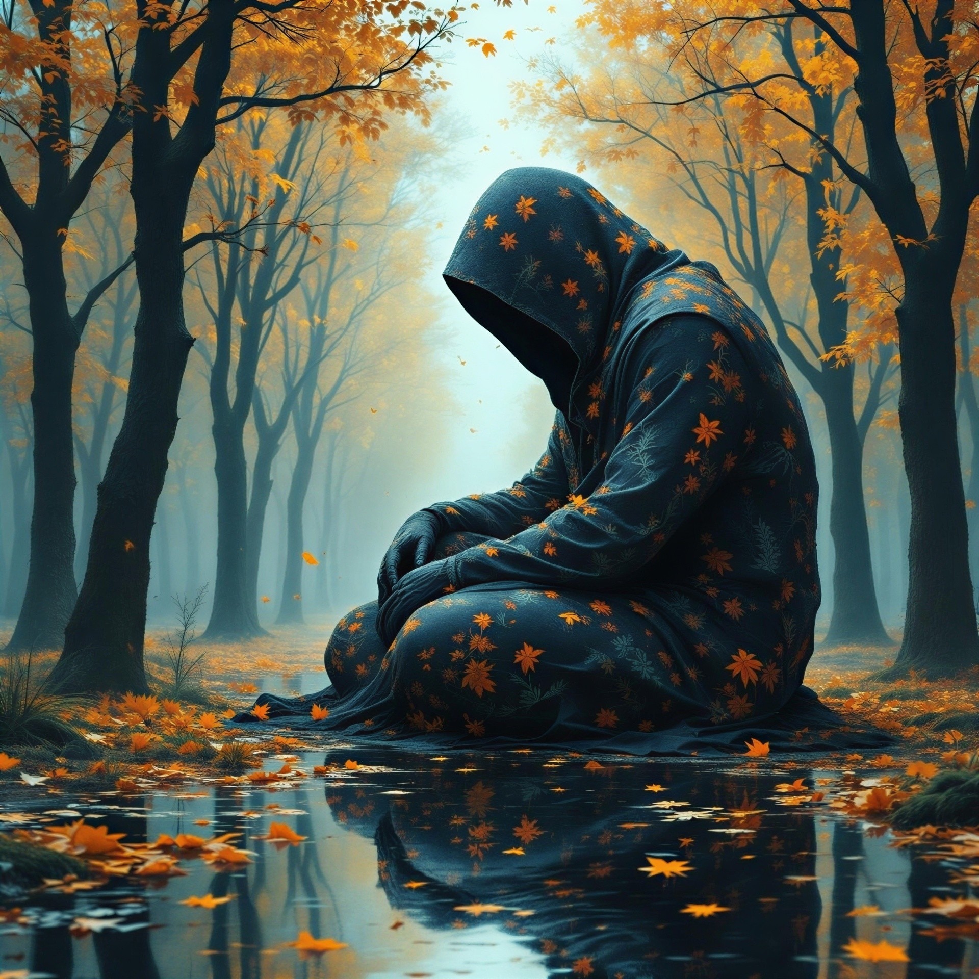 Prompt: Paint a dreamy hazy breezy wet on wet watercolour artwork, using minimal paints and maximum loose water effects, EmmAI autumnal colour palette, melancholy composition, minimalist, impressionist, with no text, no artifacts. A serene landscape at dusk with a glowing moon rising in the background. In the foreground, a lone female figure in a flowing pale purple gown stands facing away, with long dark hair. Surrounding the figure are tall, ethereal trees with white foliage, creating a dreamlike atmosphere. In the distance, several deer graze peacefully in a grassy meadow, while soft, muted colors blend together, evoking a sense of tranquility and harmony in nature. The sky transitions from dark to light, showcasing hues of gold and deep blue.