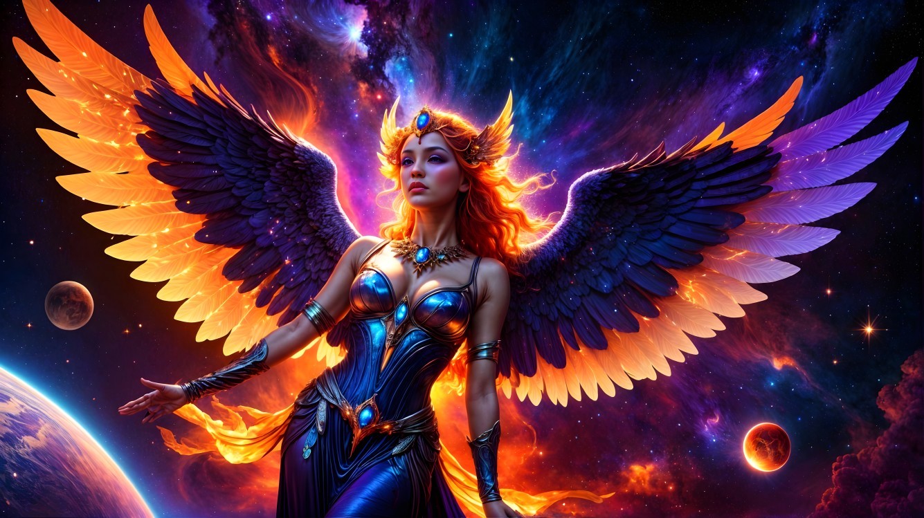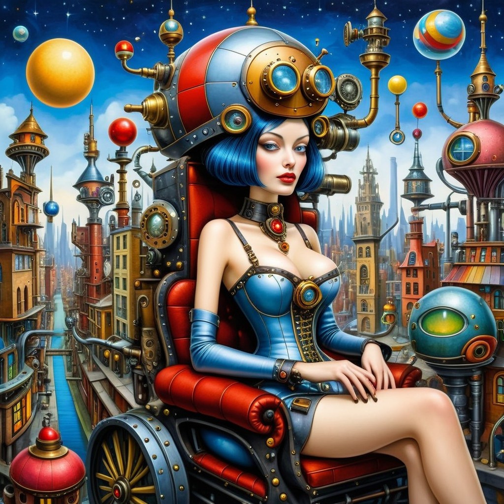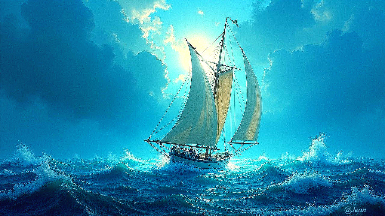 Prompt: A lone figure standing on the deck of a glowing crystalline ship, sailing across a cosmic ocean of swirling nebulae and stardust. Bioluminescent waves reflect galaxies in the sky, ultra-detailed, 8K, surrealism meets space-fantasy, vivid purples and golds, dramatic lighting, dreamlike atmosphere.