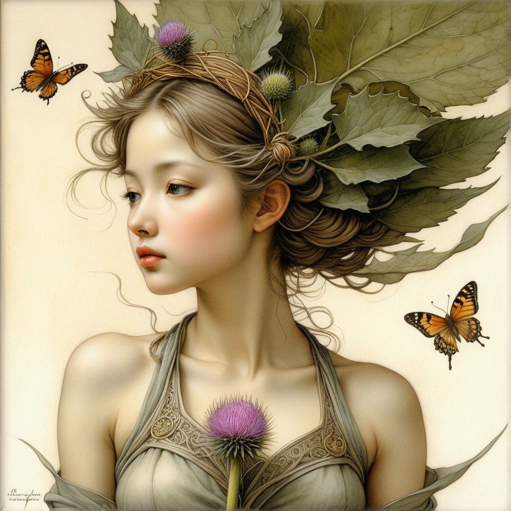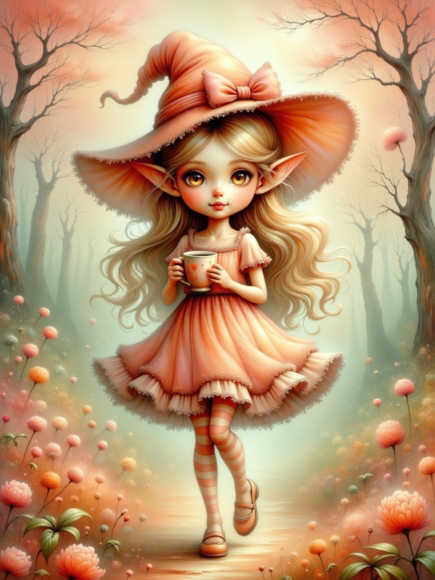 Prompt: A whimsical digital illustration in watercolor style, depicting a soft pastel of a lovely, radiant four-year-old girl, chibi, against a fantasy landscape. Around her, an elaborate arrangement of spring flowers adds a fresh and novel touch to the illustration concept. [The girl] is magically surrounded by an assortment of spring flowers, emphasizing the spirit of spring. This unique concept adds a playful and whimsical element to the scene. The illustration is enhanced with a shimmering effect on [the girl], flowers, evoking a sense of spring joy. The background is wonderful and completely subtle, emphasizing the softness and shimmering quality of the artwork, with special attention to the lovely and beautiful colors. A masterpiece. ¤Granny2024¤. Fractal elements, 3D texture. Best quality. Stipple, pointillism, zentagle. No text. No signature. No frame. No logo. No creatures.