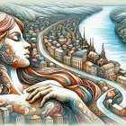 Prompt: EmmAI Fragile Vision style: A lone long windswept haired female figure walks through a futuristic cityscape, depicted in a blend of black and white with abstract lines and shapes. The background features tall, stylized buildings illuminated by a warm orange and blue glow of a moody sunrise, The woman figure is sketched in a fluid, dynamic pose, blending into the chaotic urban environment. The melancholy mood conveys a sense of solitude and exploration in a modern, ethereal setting.