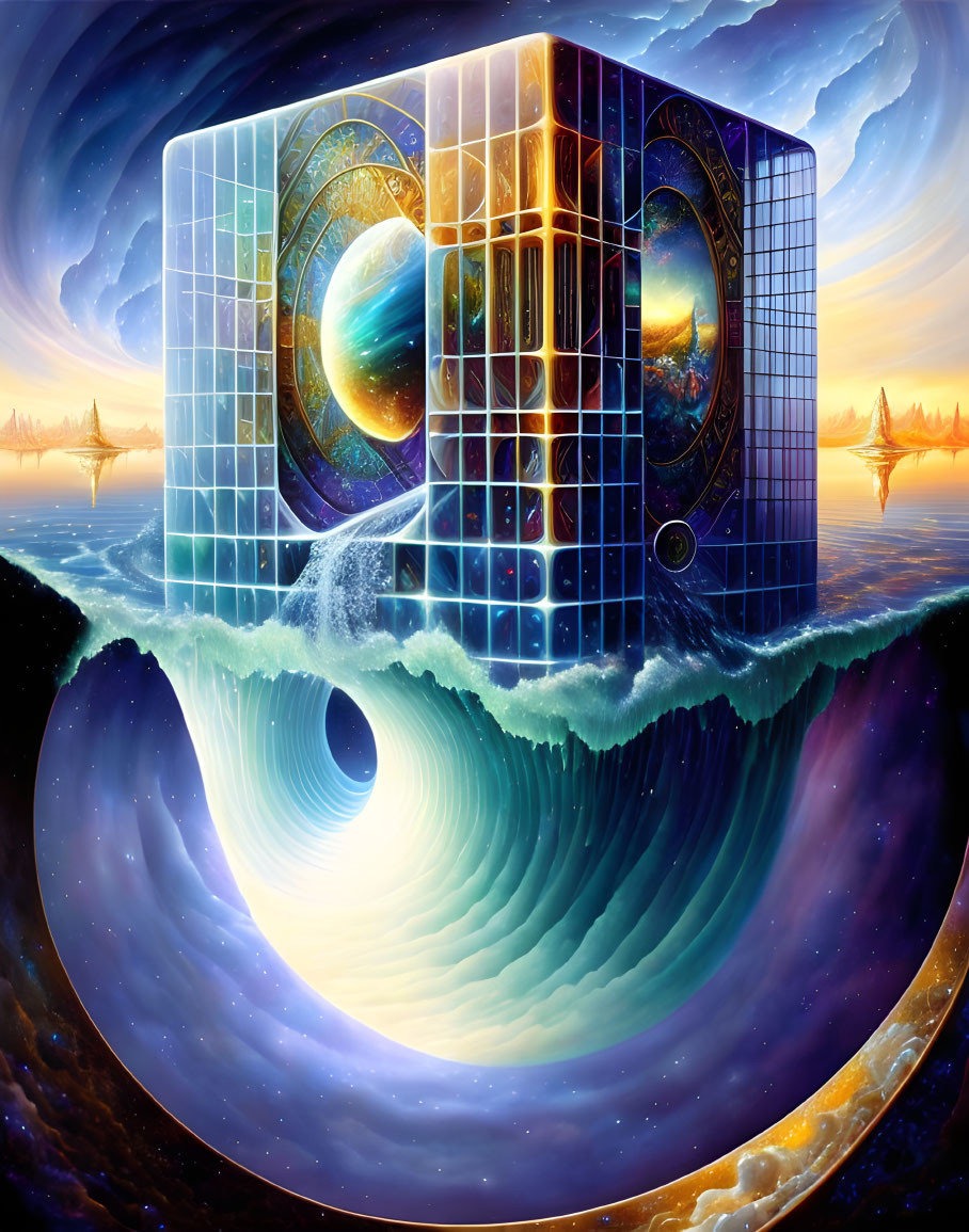 Prompt: A dark, eerie scene featuring a hooded, shadowy figure in a flowing cloak standing in front of an old, cracked monitor. The figure's skeletal hands are pressing against the screen, which reflects a stormy sky and a distorted version of the figure. Surround the base with a chaotic pile of broken electronics, keyboards, skulls, and tangled wires, all set against a gloomy, rain-soaked background with a sinister atmosphere.