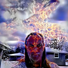 Prompt: A full-body illustration executed in a hybrid style where 80% of the visual language draws from the deep chiaroscuro, sculptural realism, and solemn emotional weight of classical Dutch Baroque painting, while the remaining 20% introduces the raw, expressive chaos of contemporary mixed-media brushwork. The result blends atmospheric mastery of light and shadow with subtle overlays of fragmented texture, ink streaks, and painterly turbulence.