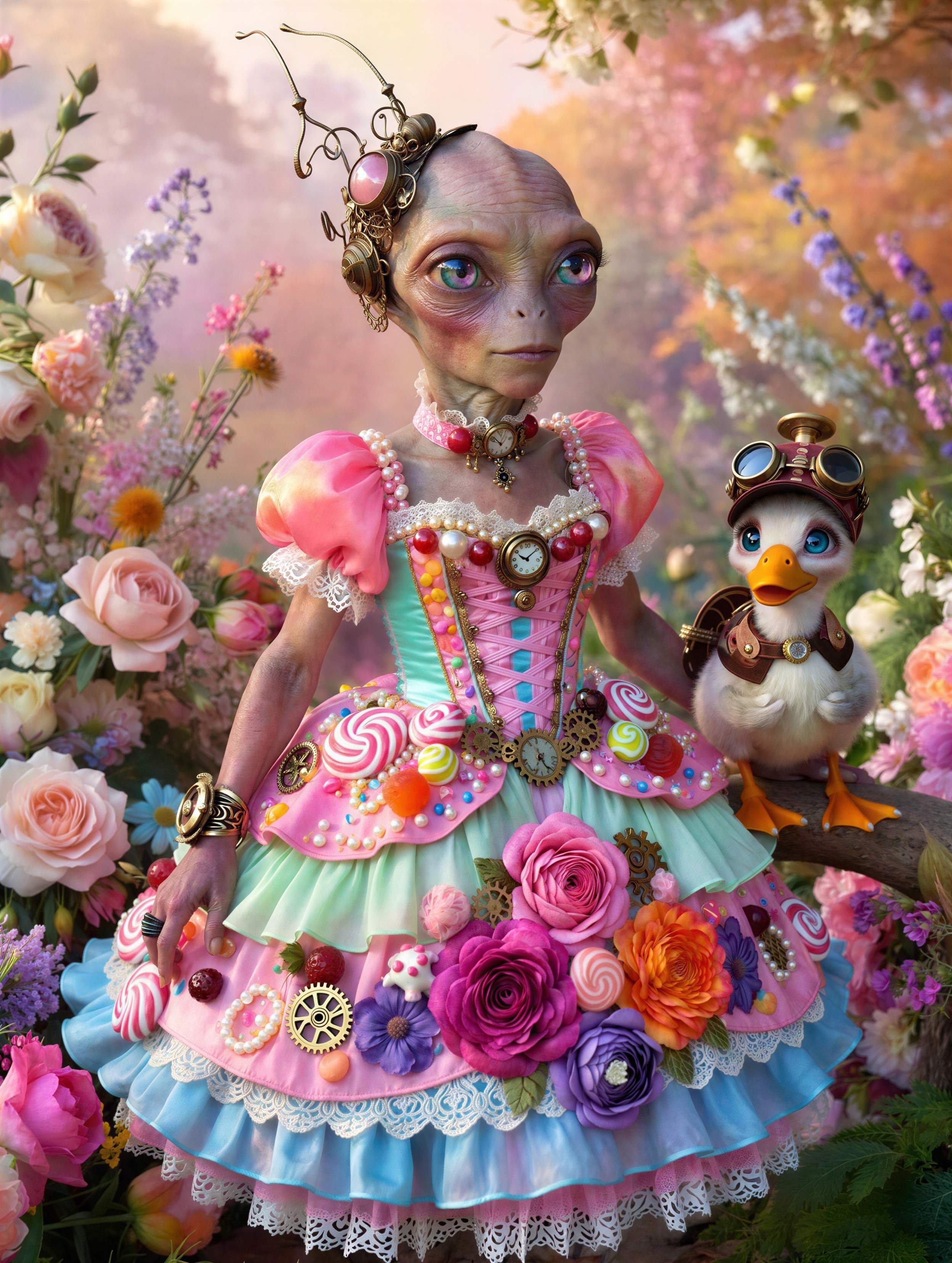 Prompt: An impossible celestial garden growing on the surface of a ringed planet, crystalline trees made of starlight, glowing flowers blooming into miniature galaxies, cosmic fog, bioluminescent colors, soft ethereal lighting, surreal fantasy space art, hyper-detailed, otherworldly beauty