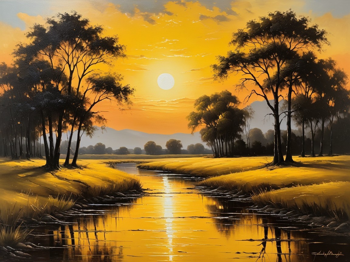 Lighting: Golden hour glow, dramatic highlights, radiant color diffusion.