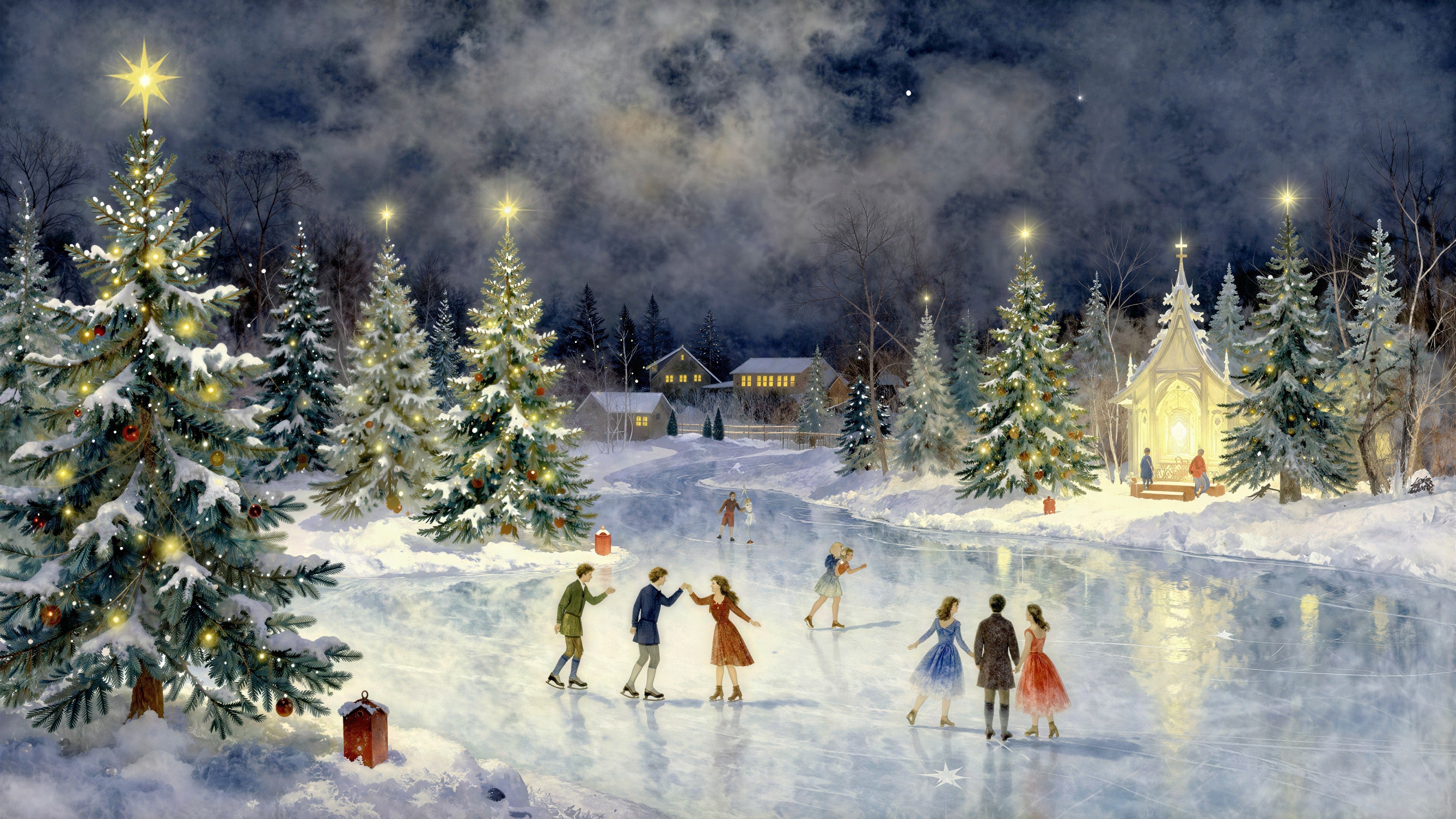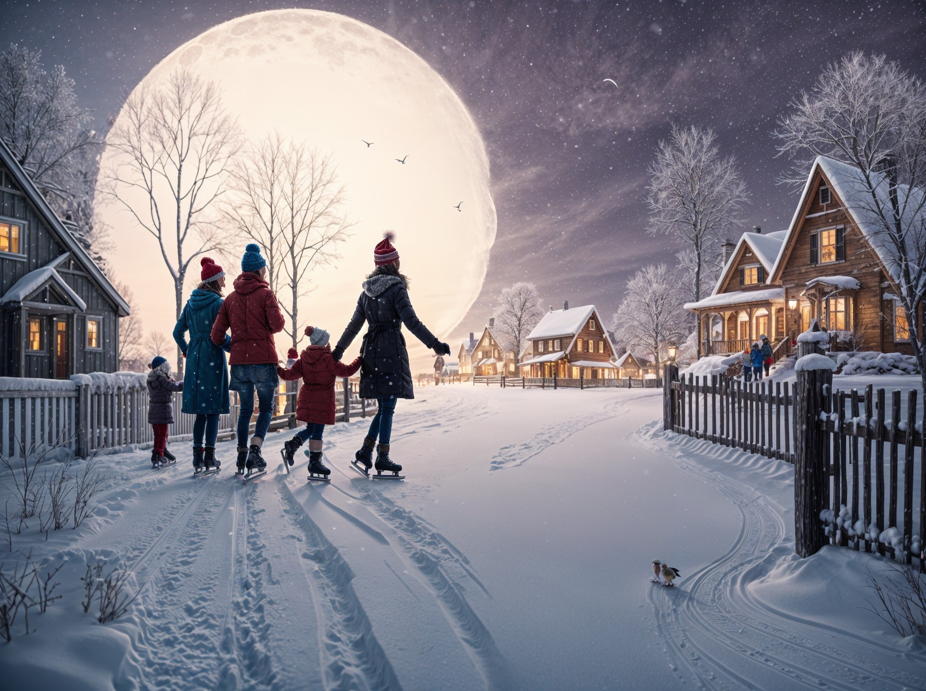 Award-winning fine art, 8K UHD, ultra-detailed, dreamlike atmosphere, whimsical winter charm.