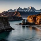 Prompt: A surreal, hyper-realistic digital painting depicts a colossal, sculpted woman's head emerging from a dark, watery landscape adorned with intricate, dark vines and vibrant red flowers. Her skin is smooth, pale gray, and she resembles a dark elf. Her eyes are glowing golden orbs, emitting light that illuminates a winding, golden path leading to the side of her head, where a lone figure stands in the silhouette of a female mage, staff in hand and wearing a long tunic and heels, her hair a chaotic mess. The scene is framed by rugged, imposing, snow-capped mountains that rise majestically in the background. The surface of the water is a mirror, reflecting the golden path, red flowers, and mountainous terrain with stunning clarity, creating a sense of depth and ethereal beauty. The overall color palette is dominated by deep grays, sharp whites, vibrant reds, and a striking, luminous gold, with dramatic contrast that enhances the otherworldly atmosphere. The Phoenix logo, rendered in a bright orange gradient with wings, is visible in the lower left corner. Masterpiece, dark fantasy, surrealism, hyperrealism, intricate detail, dramatic lighting, golden hour, cinematic, 8K, sharp focus.
