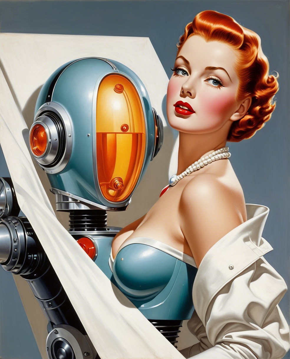 Prompt: A just awaked woman in a night bonnet and nightgown calmly drinking coffee at the sleep room window where huge Martian's war-machines flying, walking and striking lasers in the surreal Victorian London, oil on canvas, René Magritte, Paul Delvaux, Pieter Bruegel the Elder; surreal sci-fi retro illustration for Herbert Wells sci-fi novels