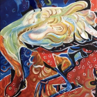 Prompt: Impressionism in Silkscreen, metaphysical painting, snow-white background with dark trees in the foreground, huge, colorful, long-winged birds dominate the landscape, by Hugo Pratt, by Alison Kinnaird, by Sylvia Wishart, by Malcolm Morley