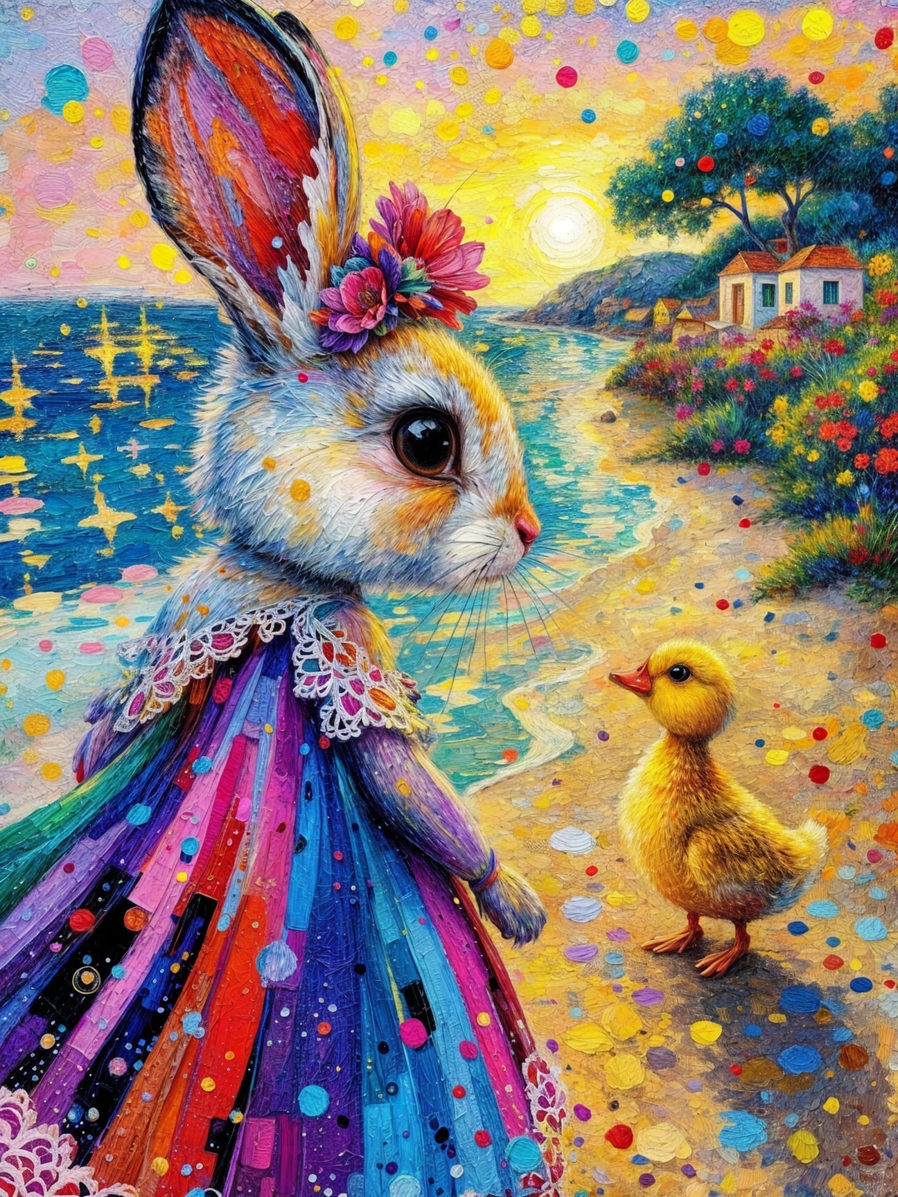Prompt: Oil painting. Several cute abstract cats with glitter in their fur are on a textured metal surface. Close up. Whimsical art style. Playful, stylized forms. Rich impasto textures. Sparkling highlights. Dreamlike colors. Vibrant and whimsical lighting. Masterpiece, intricate details, expressive brushwork, impasto texture, colorful, abstract, whimsical, inspired by Marc Chagall, inspired by Rosina Wachtmeister, inspired by Paul Klee, vivid.