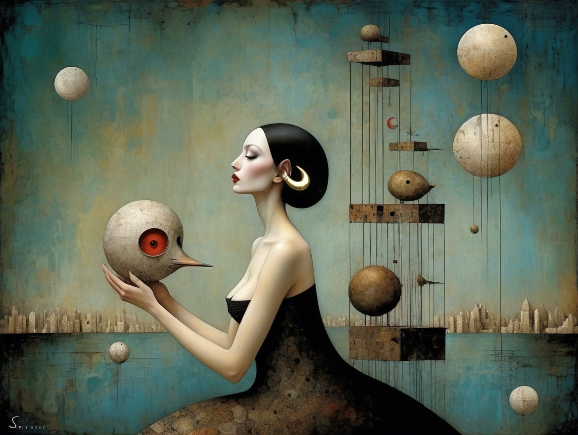 Prompt: ((A colorful and abstract Masterpiece)), ((A vibrant cosmic collage featuring celestial bodies, stylized rockets, and astronauts. It depicts the universe's mysteries, with a colorful burst of energy at the center and various planetary scenes. Hyperrealistic style. Pastel and oil painting), By Mamoru Nagano, Edward Gorey, Joan Miró, Beksinski, Aubrey Beardsley, Catherine Abel, Paul Klee, Tomasz Setowski, Dee Nickerson, Jaceck Yerka.
