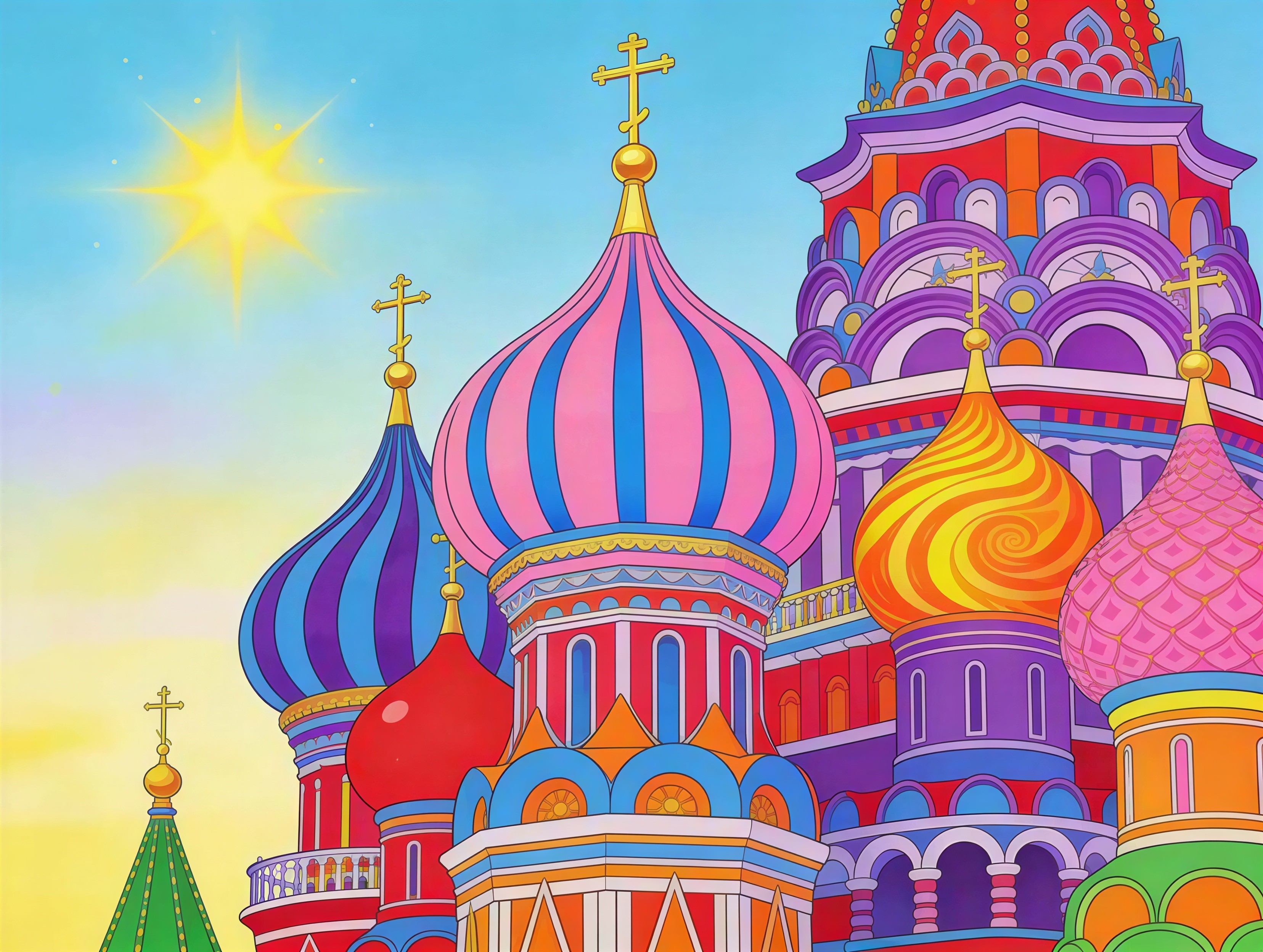 Prompt: A picturesque winter scene featuring a church with a prominent tower and dome, surrounded by snow-covered trees and bushes. The sky is clear with a few wispy clouds, and the sunlight illuminates the snow, creating a bright and serene atmosphere. The church has a white facade with green accents on the dome and tower, and the overall setting exudes peacefulness and winter charm. The composition emphasizes the contrast between the bright snow and the blue sky, with the church serving as the focal point amidst the frosted landscape.