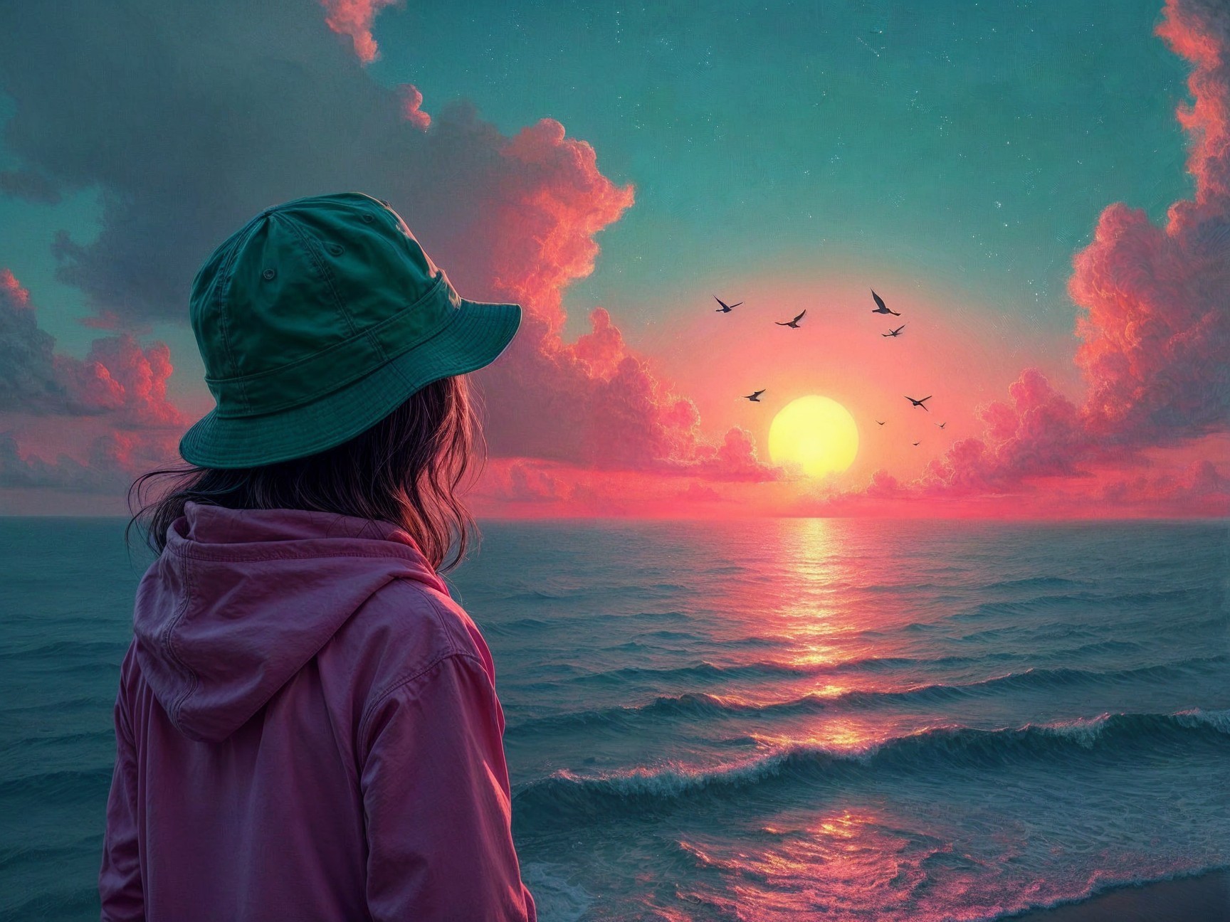 Prompt: Lcan you create a mixed media artwork abstract/surreal composition illustrating the following description? "I'd tune into some friendly voices