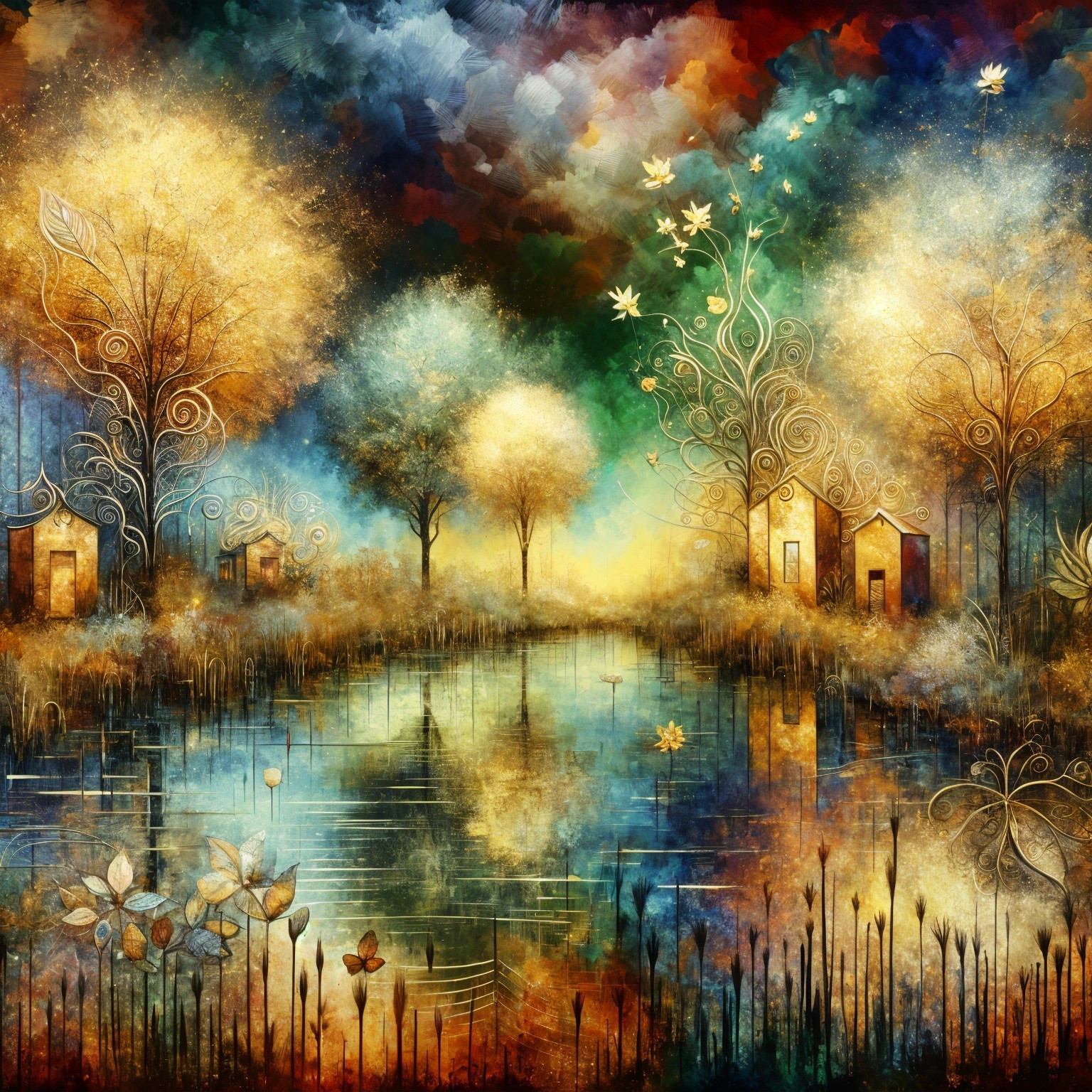 Prompt: Una escena que simbolice la conexión interna y la paz interior, representada por una figura en meditación rodeada de un paisaje natural etéreo, mágico y armonioso. Imagina un amanecer dorado en un valle cubierto de flores brillantes, con el sonido visual de las ondas en calma y luces suaves que fluyen como susurros celestiales. Árboles serenos y antiguos que se alzan como guardianes, mientras suaves partículas de energía positiva emergen del corazón de la figura, conectando con el universo a través de un cielo lleno de colores vibrantes e inspiradores. Un verdadero santuario del alma, lleno de quietud y conexión. Este diseño debe evocar introspección, esperanza y el poder de cultivar paz interior para impulsar un mundo mejor.