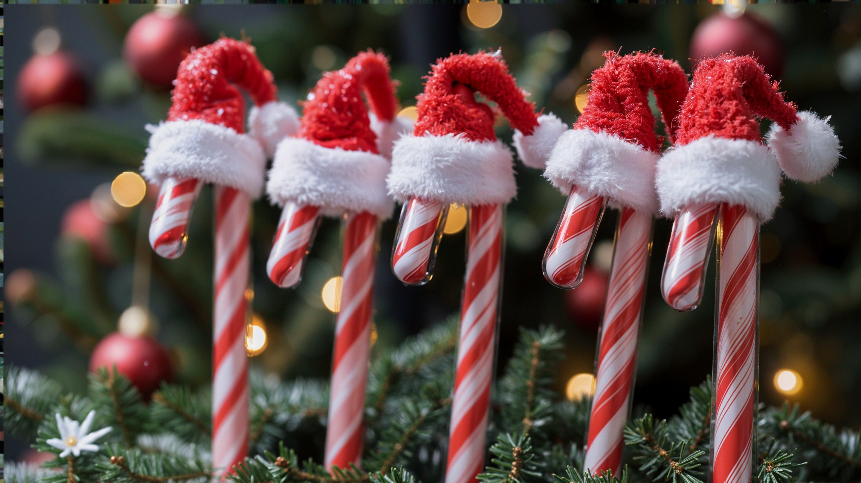 Prompt: A wintry background with a sweet composition: A beautiful, carved chocolate mouse wearing a chef's hat and apron holds a wooden spoon in one paw and a fork in the other. It has blue eyes, large round ears, and a pink nose. Chocolate fir branches are decorated with baubles, pine cones, bells, cinnamon, and mint. Frost patterns, frost, and glitter adorn the fir branches, cinnamon, and stars in the sky. New Year's celebration. Style: Pop Art, Graffiti