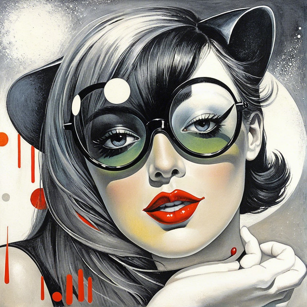 Imagine a portrait where realism is merely a ghost, glimpsed through a vibrant storm of black, white, yellow, and a single, passionate note of red. The artist's hand is revealed in a pointillist mist—countless fine, wispy dots that dance to form patterns as delicate as frost and as wild as wind.