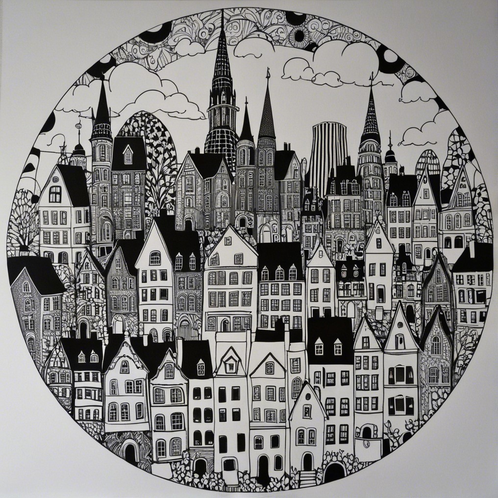Prompt: mist-shrouded city where all clocks run backward. In its center stands a tall stone tower with countless broken clock hands raining down through the fog. Below, an old clockmaker with a glowing droplet of light in his palm enters the tower, whose interior spirals upward with floating gears and inverted pendulums. Ethereal, melancholic atmosphere, intricate painterly detail, cinematic lighting, in the style of Alan Lee × Donato Giancola.