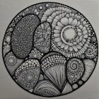 Prompt: Child's hand-drawn doodle, charming black and white pencil line art, heartwarming scene of a mother shopping, cart filled with essentials, bags of groceries, baby products like diapers and toys, joyful and busy atmosphere, simple and endearing style, emphasis on the bond between mother and child, sketch-like quality, soft shading for depth, detailed expressions, playful and innocent touch, authentic and relatable, nostalgic vibes, reminiscent of childhood creativity.