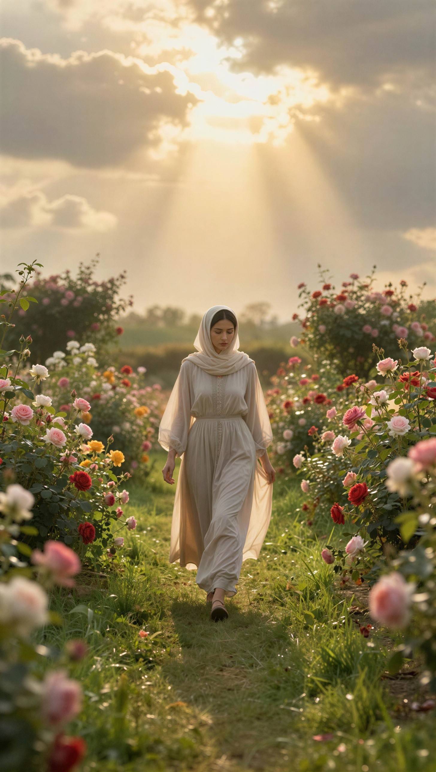 Prompt: Un ser humano femenino representado en un paisaje etéreo, inmerso en una luz celestial radiante y rodeado de una atmósfera de calma insondable. La imagen captura el instante en el que este individuo entiende que posee el poder de elegir su camino, con una expresión de profunda claridad, empoderamiento y paz. Los colores suaves, como dorados, blancos perlados, azules celestiales y verdes vibrantes, simbolizan la pureza y la conexión con lo divino. En primer plano, sus manos abiertas emanan energía luminosa, como un reflejo de su voluntad en perfecta unión con el universo guiado por el Espíritu. El fondo, un paisaje infinito que se desvanece en horizontes, representa la libertad infinita de elegir, mientras que formas abstractas, como alas translúcidas o plumas resplandecientes, emergen sutilmente, simbolizando la guía espiritual y el mensaje "Tengo el poder de decidir". Es una escena vivida y elocuente, impregnada de detalles oníricos que evocan sabiduría interior y entrega a la paz eterna.