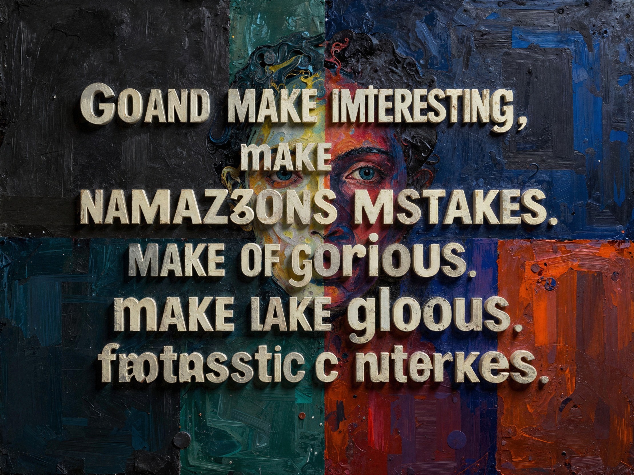 Prompt: Create a folk art, hand painted antique canvas of a mysterious blurry cinematic photo featuring a long dusty country road bordered by litter and stones and dried up weeds.An old fat man with a long scraggly beard is struggling to make his way along the road.He is dressed in a dirty torn Santa costume.He is dragging a large green sack behind him.The sack is torn open and gift boxes are falling out.There is a trail of these gift boxes extending out behind the old man.It's a horribly hazy, dusty afternoon. A moody backdrop with a dingy dark clouds, and drifting dust creates an ominous atmosphere of dread. The image has finely detailed structures yet with uncertain textures, fine scratches, tears, and cracks in the paint in a style comparable to that of Gabriel Pacheco. This is an antique extreme canvas textured. Colors of, brown, tan, dirty red, faded yellow, sea green and blotchy blue shift into each other like sandy mist.