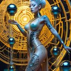 Prompt: Beautiful artwork of the first creation in the universe | science fiction wallpaper.butterflies of different colors and birds are very beautiful forest princess and forest king.beautiful charming woman blonde with blue eyes and very thick luxurious hair in a beautiful dress mistress of the forest mother nature squirrel thousands diamonds felicità.a girl of indescribable beauty.delightful light elusive tender magical alluring girl.the squirrel girl sparkles like a diamond with her beauty.unique indescribable beauty paradise bliss