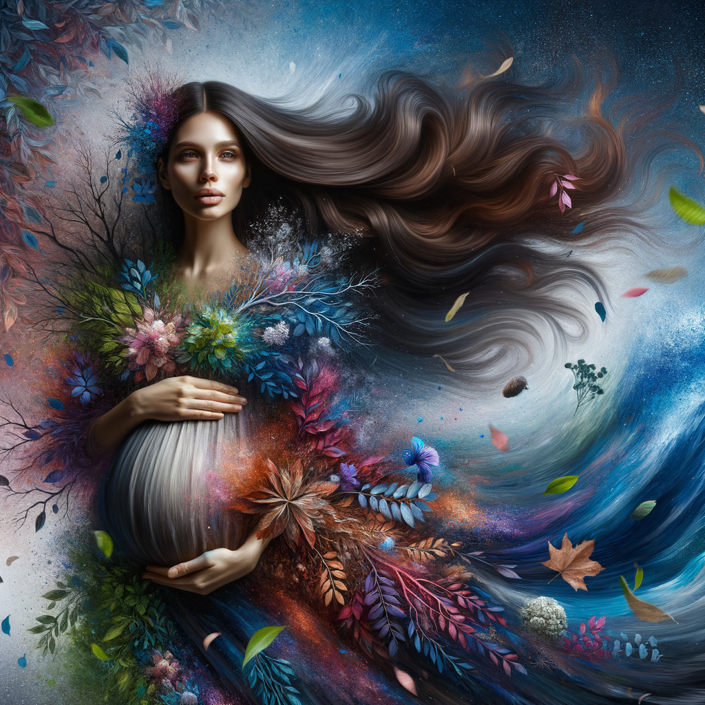 Prompt: A young woman with wavy hair holds a large bouquet of blue flowers, standing in a softly lit, ethereal meadow. She wears a light blue off-the-shoulder dress, and her expression is gentle and contemplative. The background features a dreamy blend of pastel colors, enhancing the serene atmosphere.