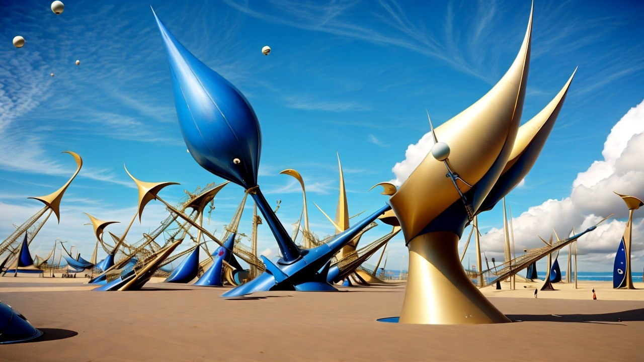 Prompt: This image is a surreal and intricate piece of art that features a face composed of a myriad of architectural elements and fantastical scenes. The face is the central focus, with the eyes being particularly striking and detailed. These eyes are filled with a variety of scenes, including buildings, landscapes, and even celestial bodies like planets and moons. The architecture ranges from gothic cathedrals and medieval towers to more fantastical structures that defy conventional architectural styles. The image is rich in detail and color, with a vibrant palette that adds to the surreal and dreamlike quality of the piece. The overall composition is complex and layered, with elements that seem to overlap and intertwine in a way that is both chaotic and harmonious. The use of perspective and scale is particularly noteworthy, as the architectural elements are seamlessly integrated into the facial features, creating a sense of depth and dimension. The artwork appears to be a reflection of the artist's imaginative and creative vision, exploring themes of identity, perception, and the interplay between the natural and the man-made. It is a testament to the power of surrealism to challenge conventional perceptions and invite viewers to explore new and unexpected realms of thought and imagination.