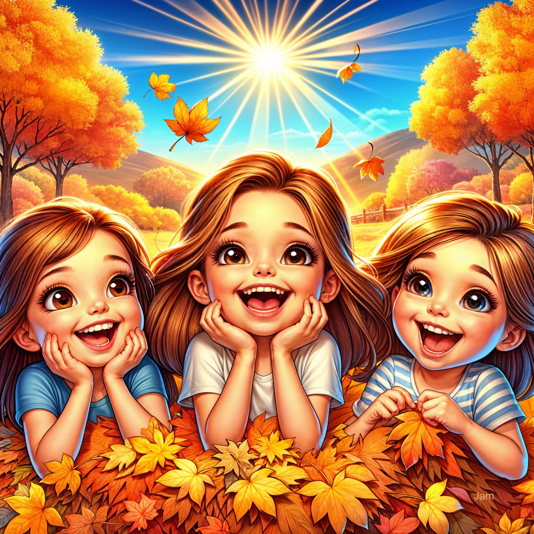 Autumn Laughter in Colorful Leaves