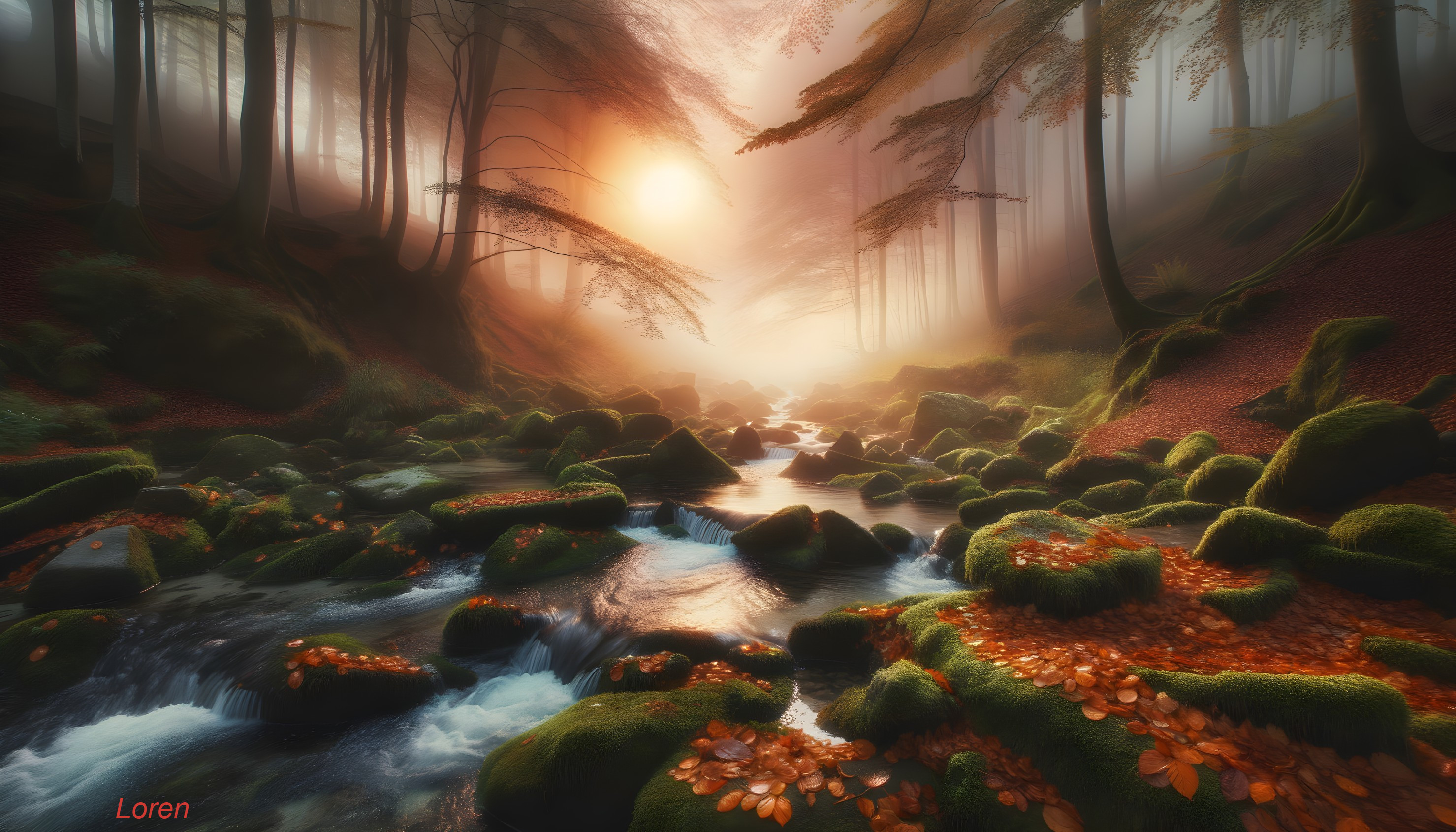 Enchanted Woodland: Sunbeams and Mossy Rocks