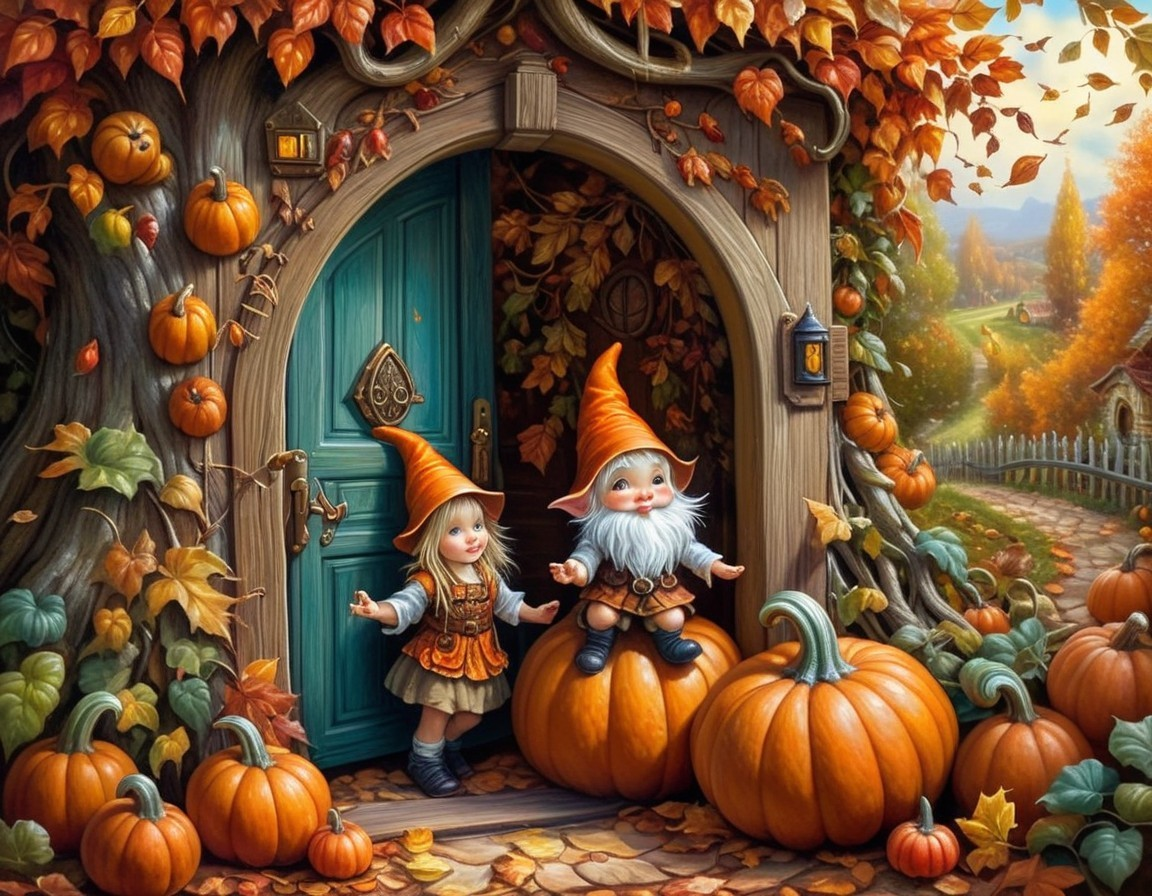 Autumn Elegance: Orange Hair and Leaf Motifs