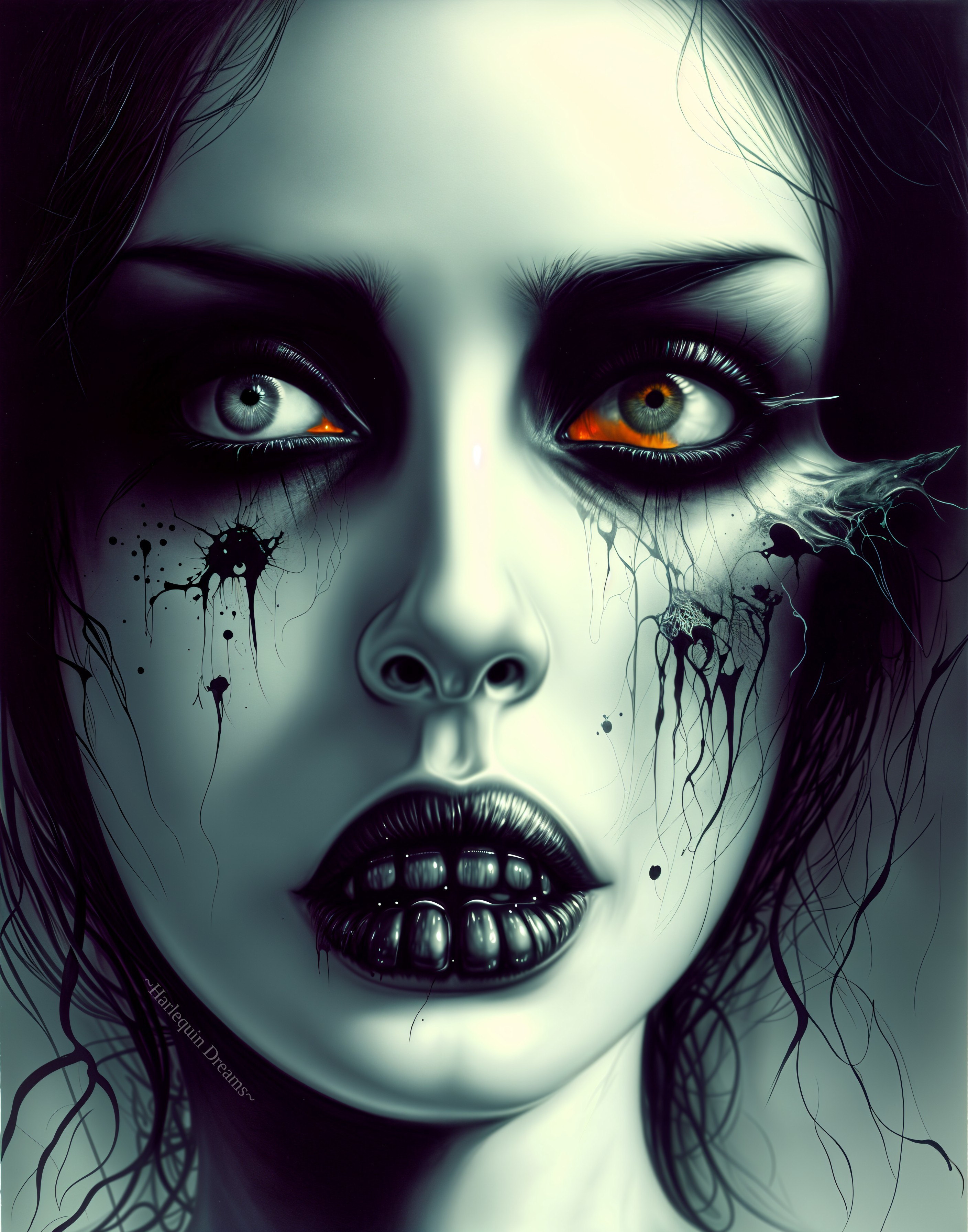 Ink-stained Beauty: Orange Eyes & Black Lips