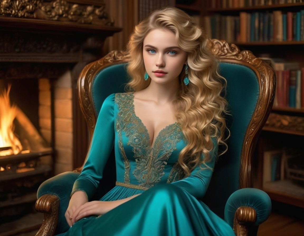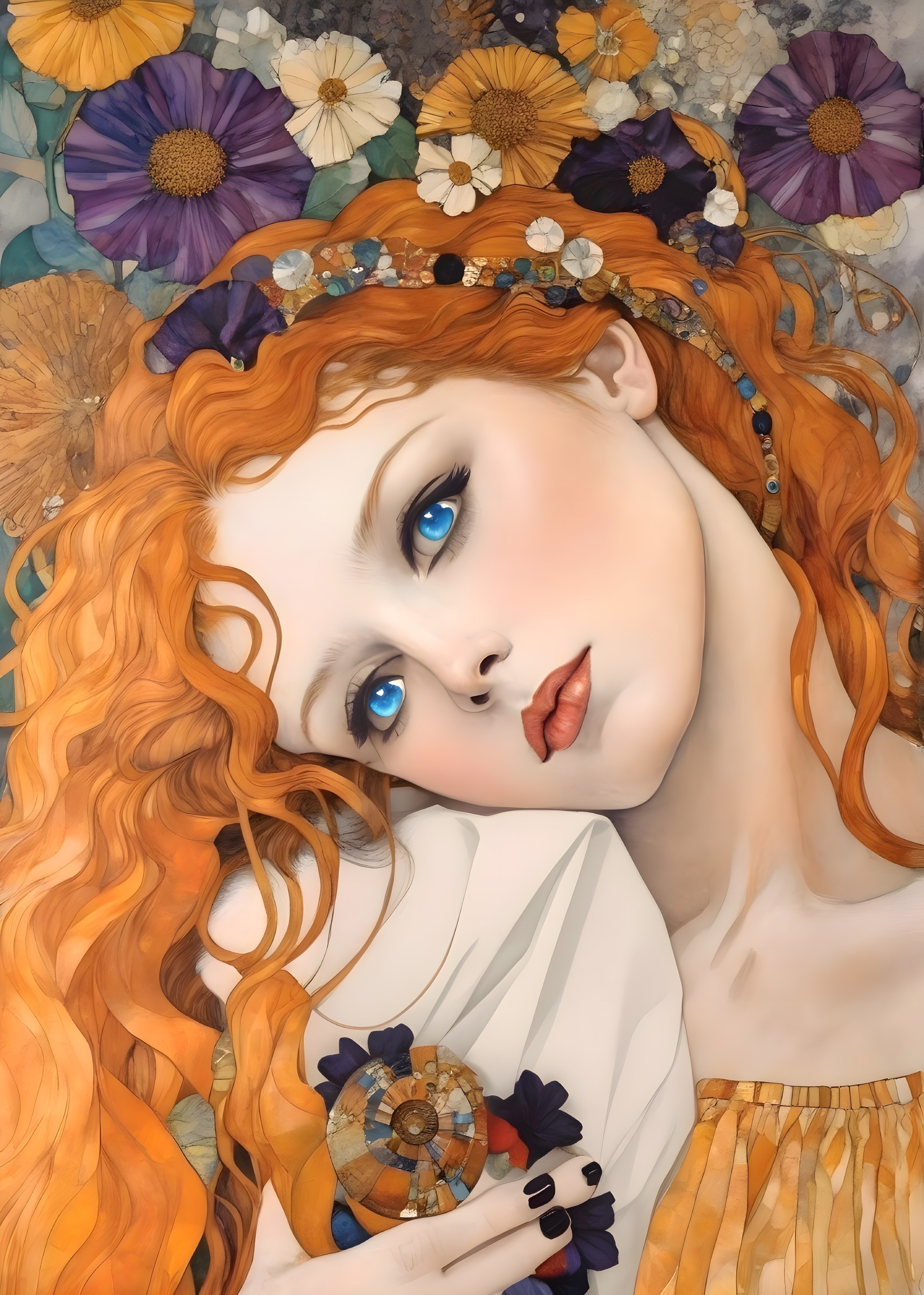 Mystical Beauty: Blue-Eyed Woman with Floral Headpiece