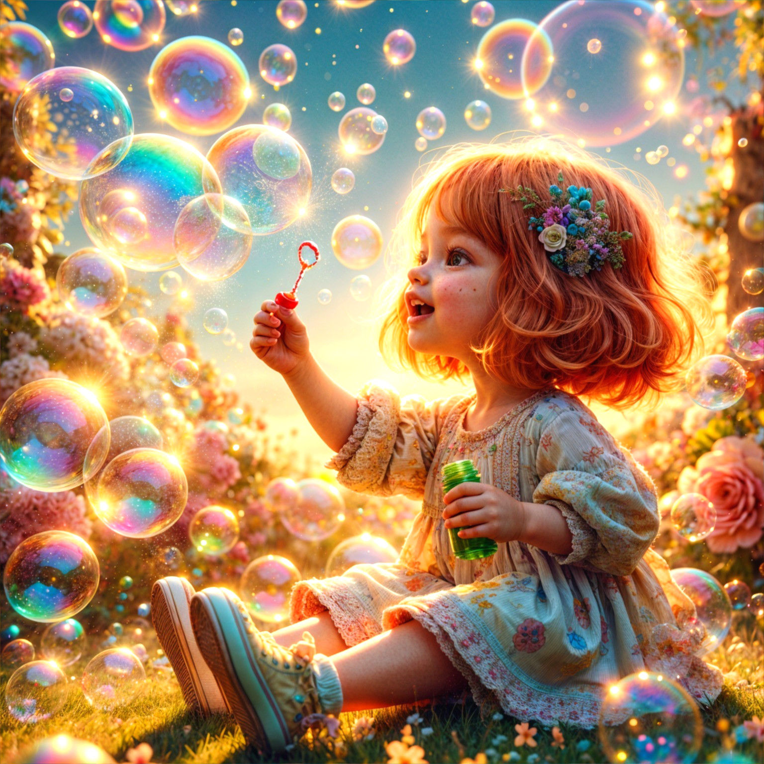 Whimsical Girl in a Bubble Wonderland