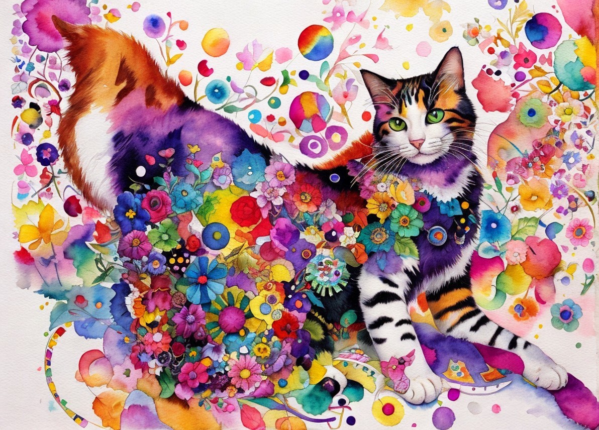 Colorful Calico Cat Portrait with Joyful Vibes