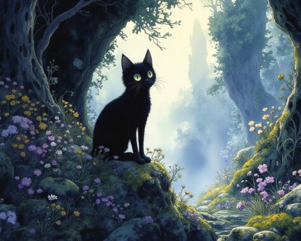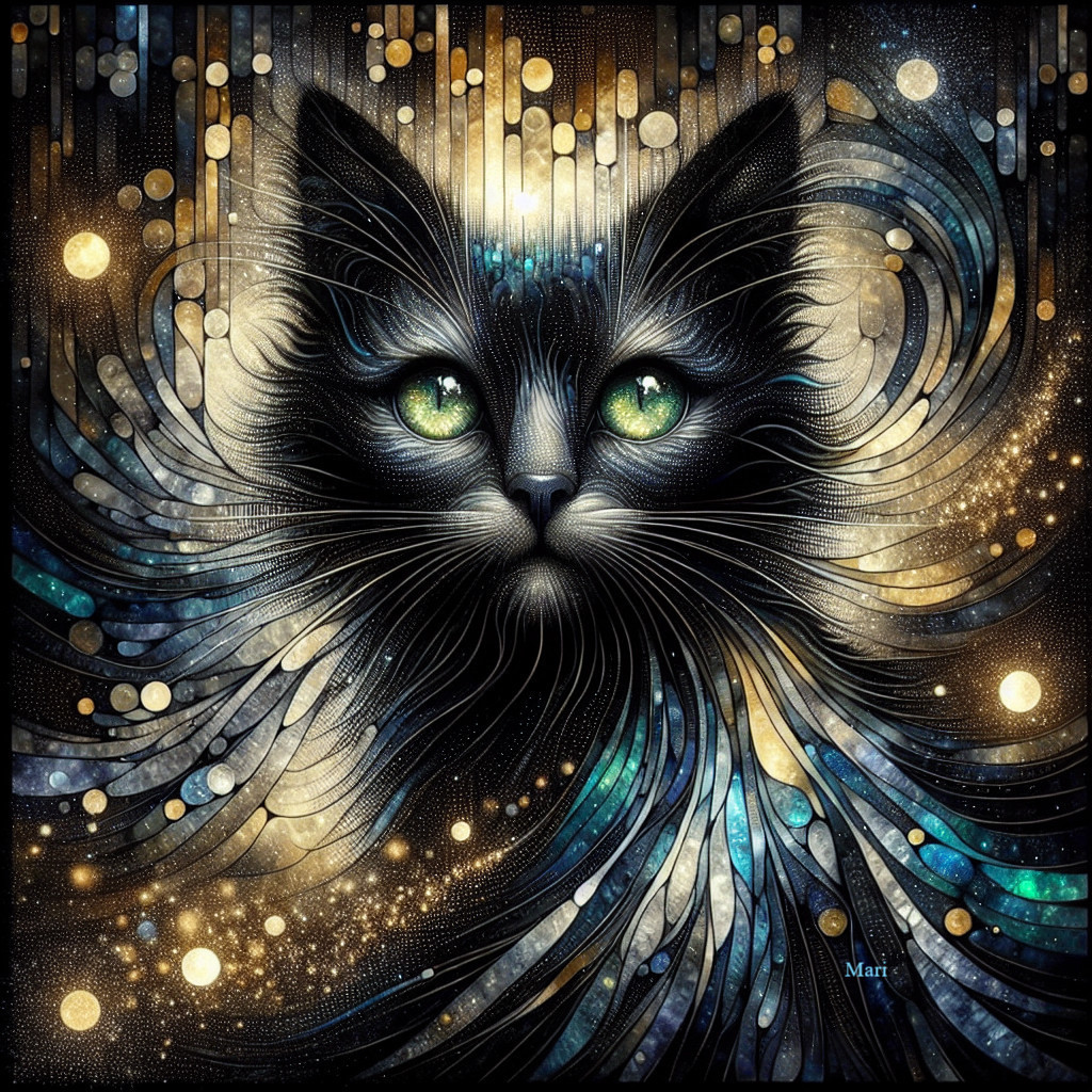 Vivid Harmony: An Art Nouveau Cat Portrait