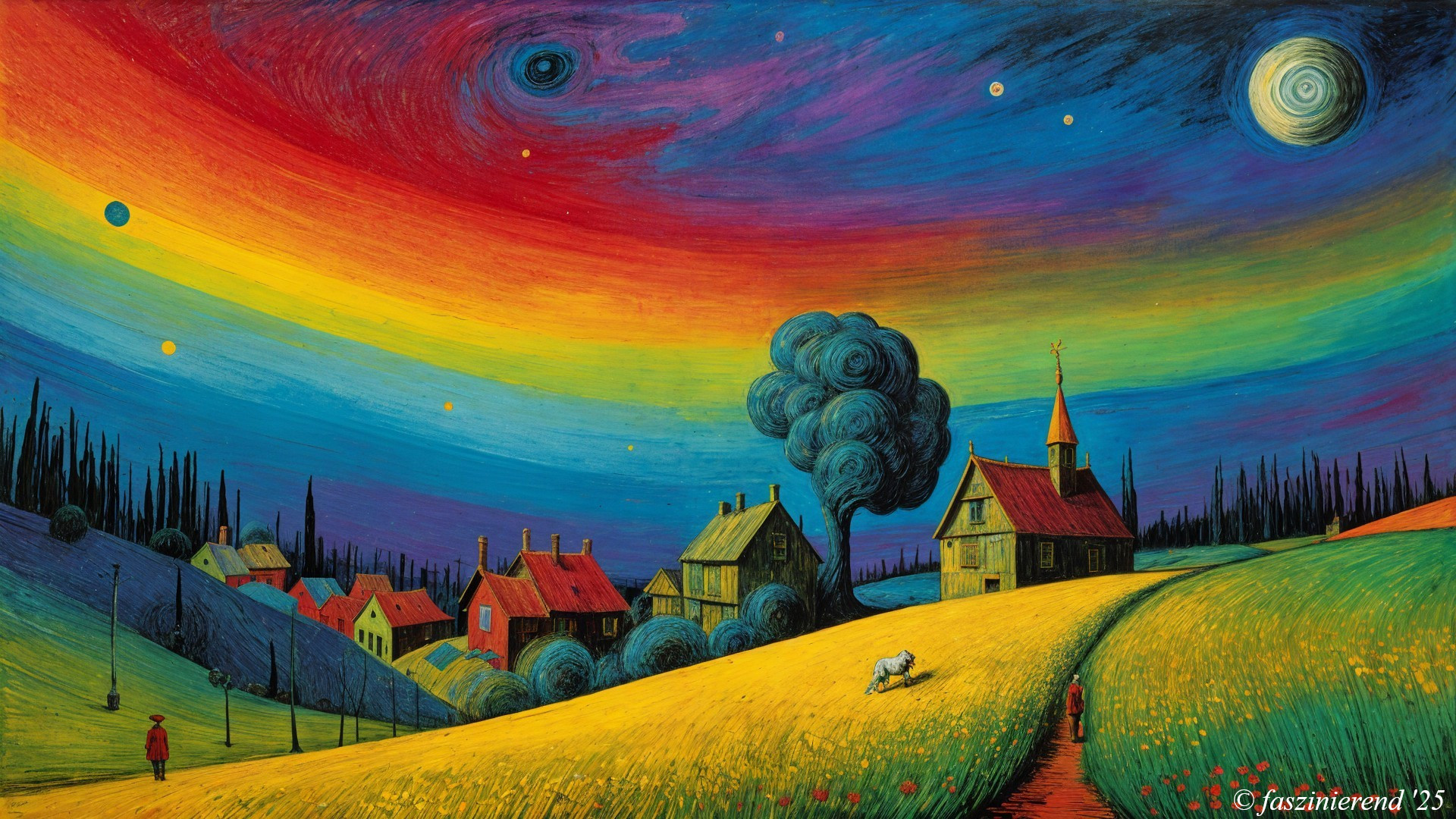 Dreamlike Landscape with Whimsical Figures