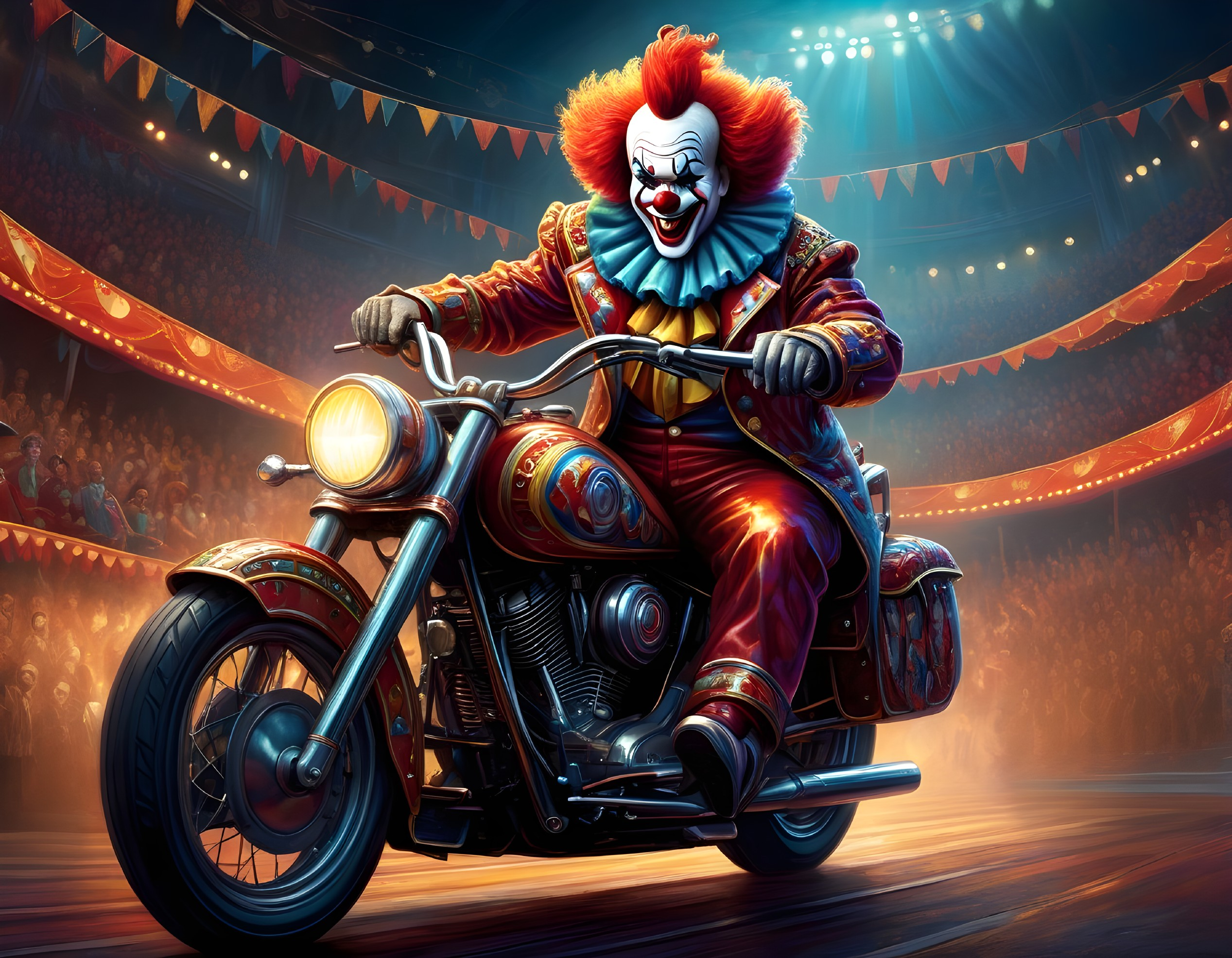 Sinister Clown in Fiery Circus Scene