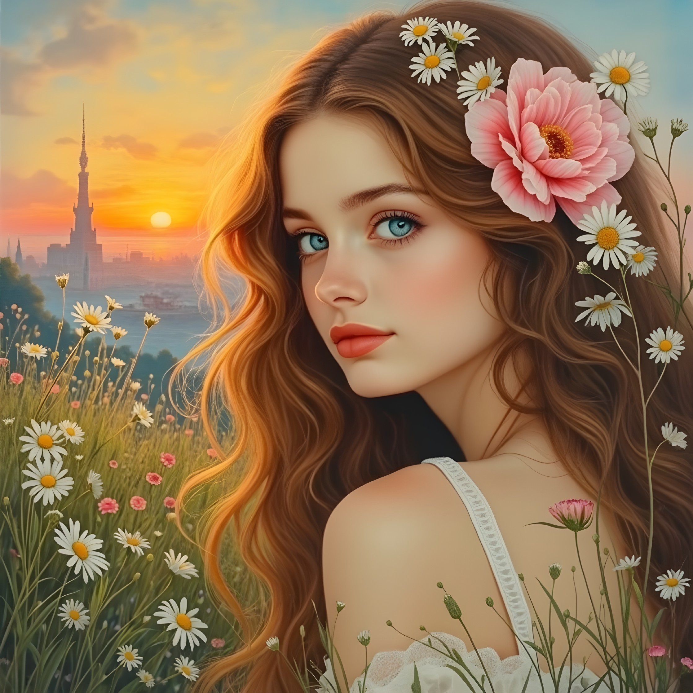 Summer Elegance in a Daisy Field