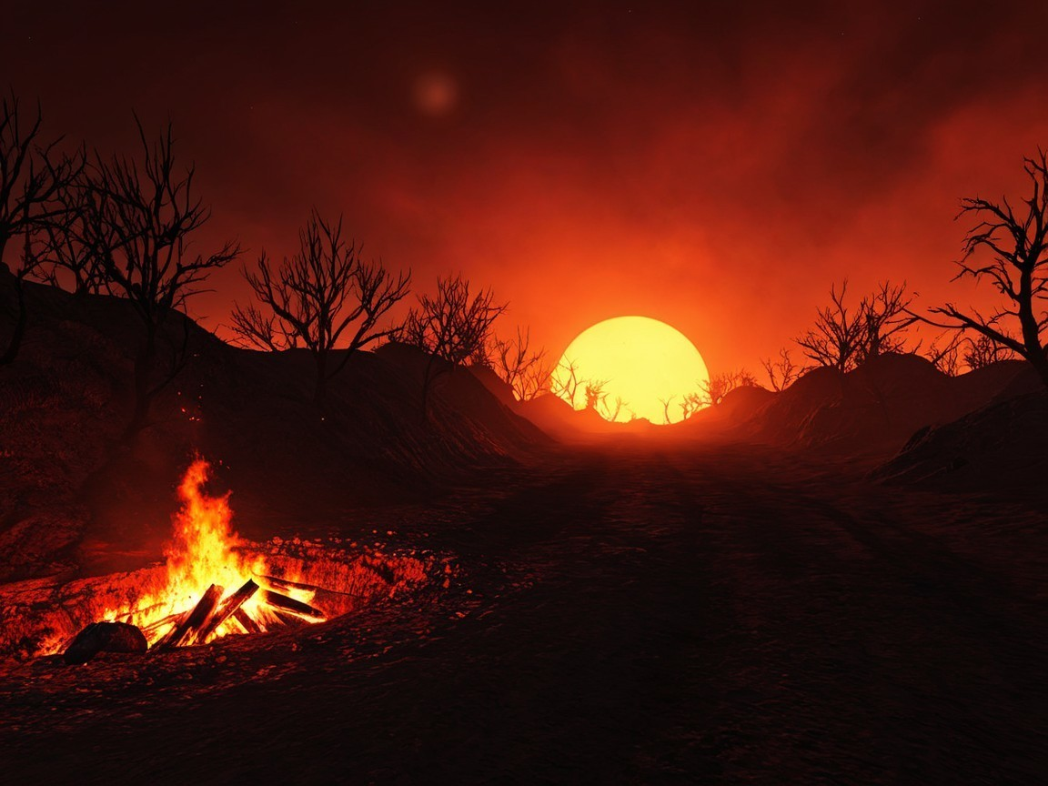 Dark and Mysterious Forest with Creepy Gnarled Trees in Thick Fog
