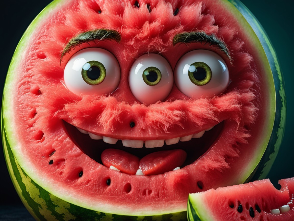 Whimsical Watermelon Creature Portrait (Repetition: 119w)