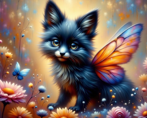 Fluffy Fox with Fairy Wings in a Dreamy Garden
