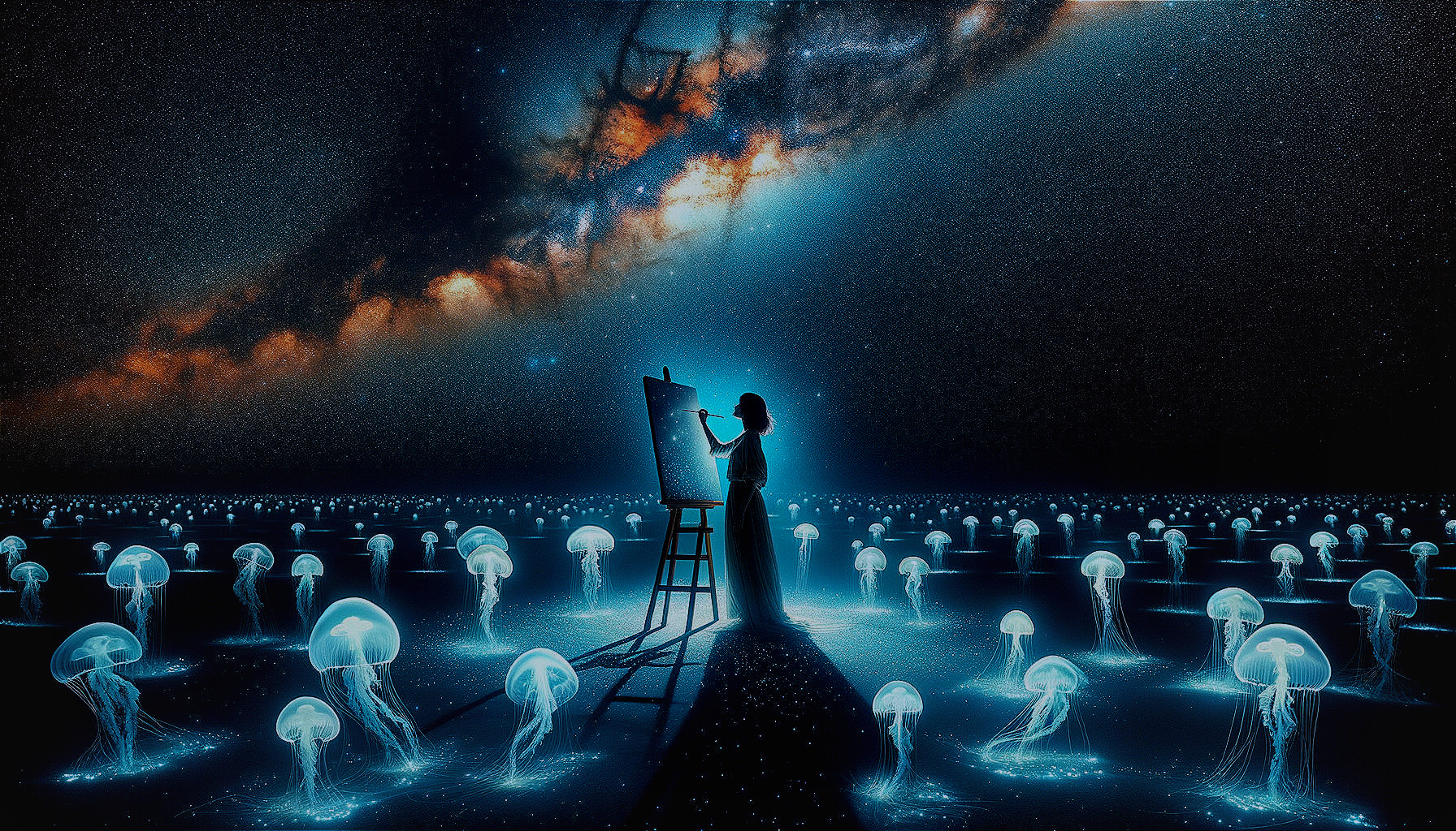 Cosmic Serenity: Flowing Hair & Radiant Robes